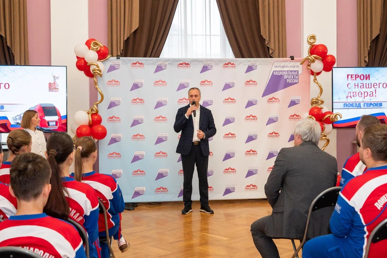 «Поезд героев» курсирует в рамках сотрудничества патриотического проекта «Герои с нашего двора!» и РЖД. Путешествие талантливых ребят началось в Новосибирске, поезд проследует до Волгограда.