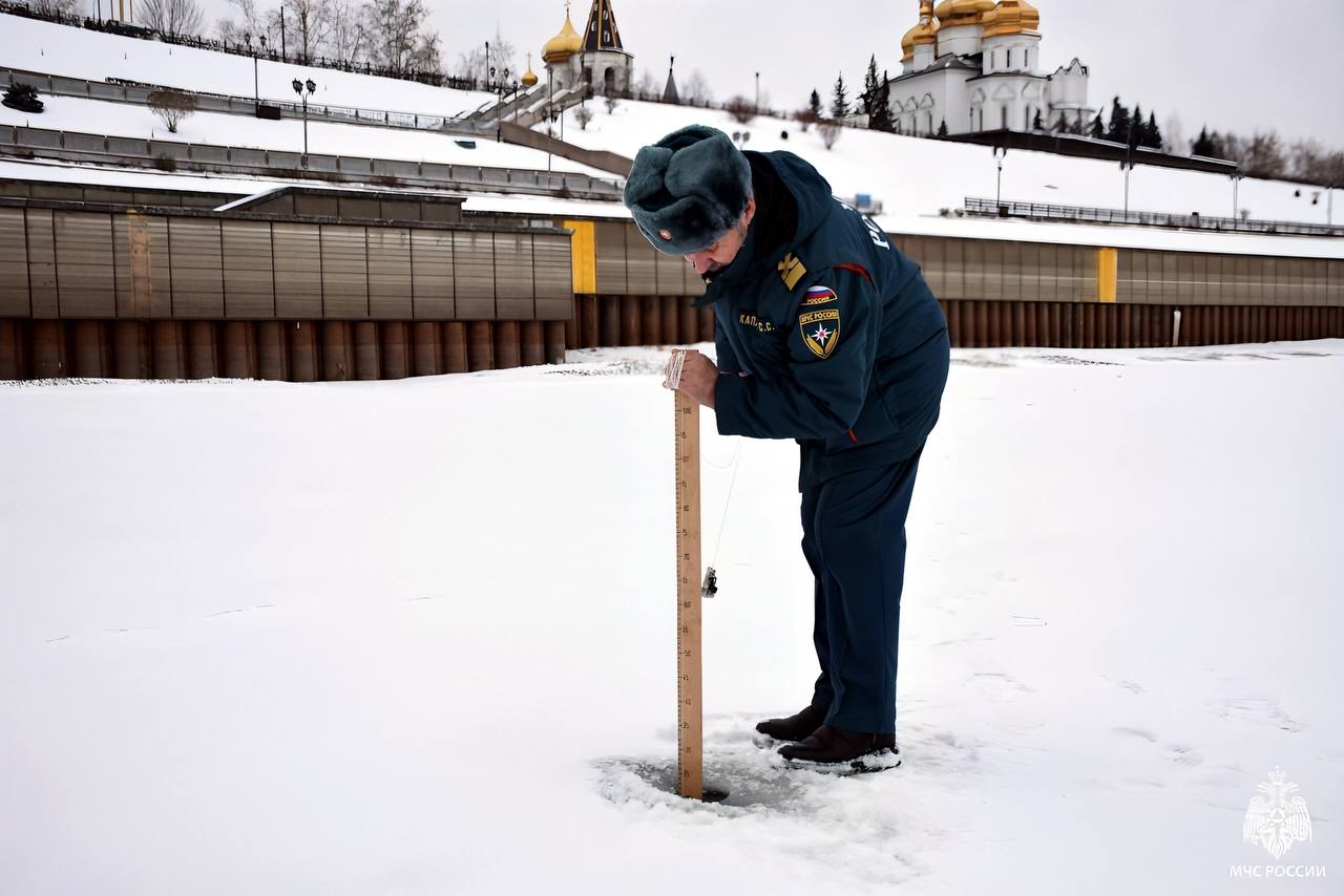 Сотрудники центра ГИМС регионального ГУ МЧС России по Тюменской области еженедельно проводят замеры толщины льда, чтобы убедиться в его прочности.