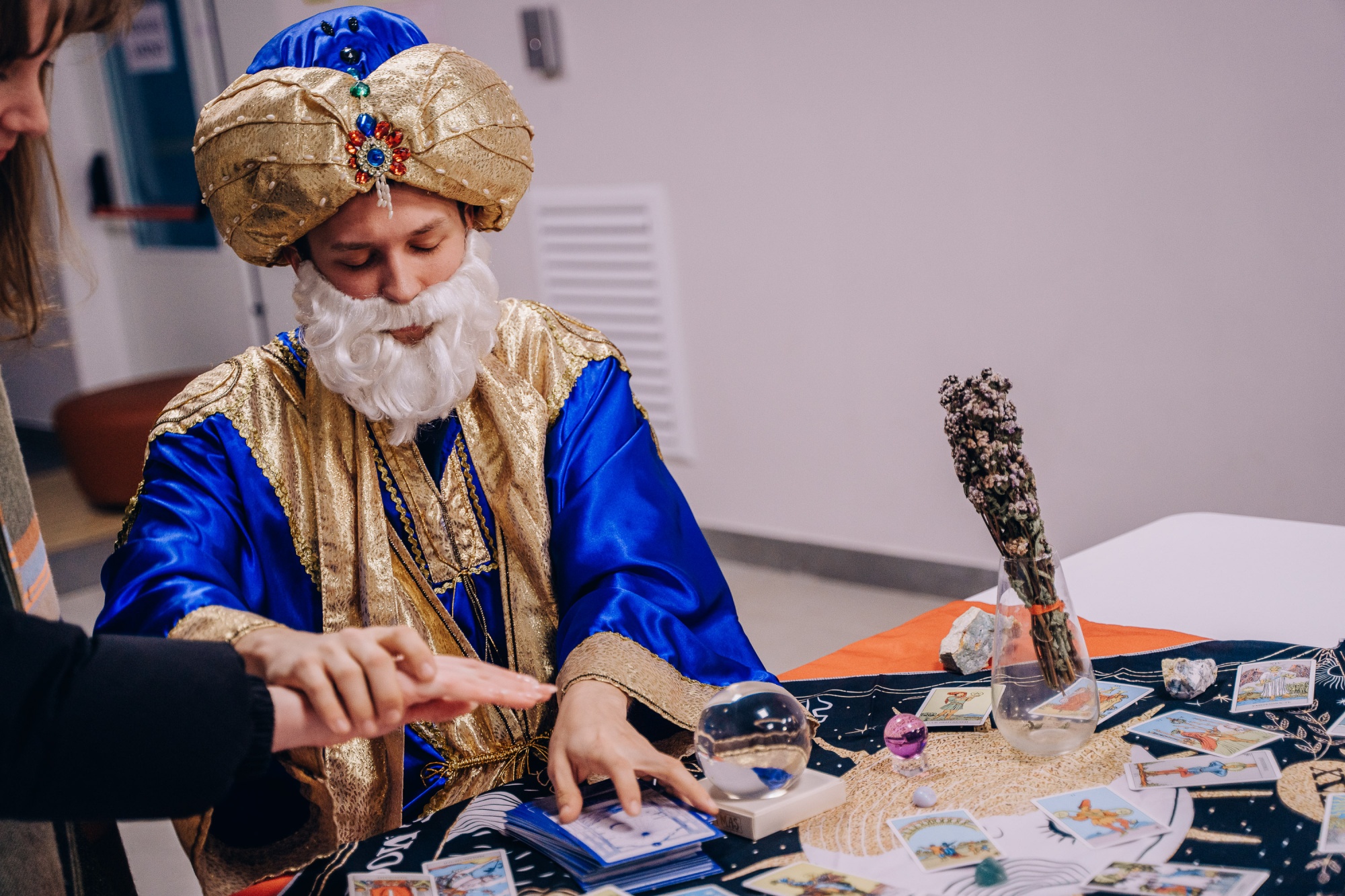 На одном из избирательных пунктов Тюмени заметили предсказателя. Он раздавал карточки и рассказывал о будущем.