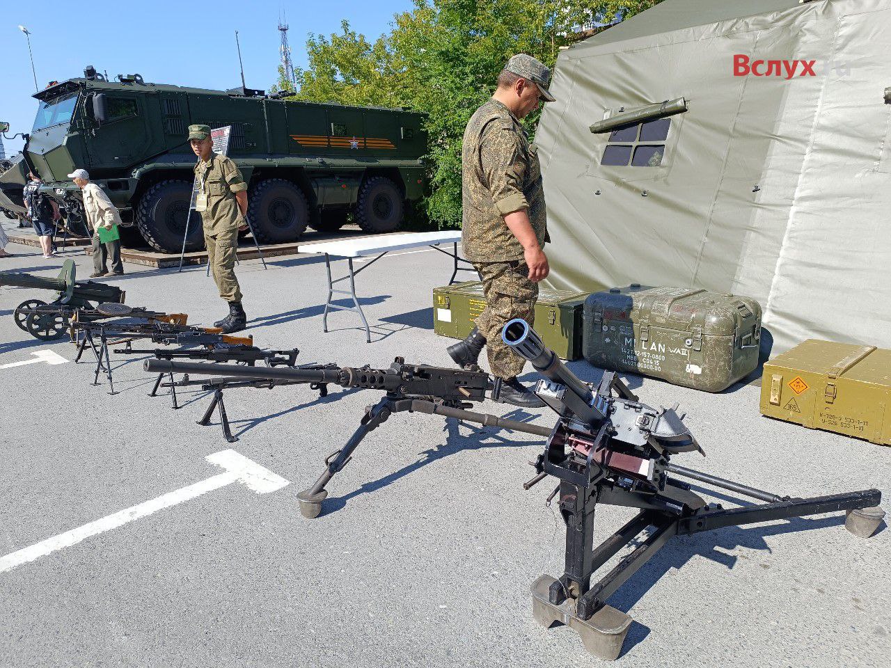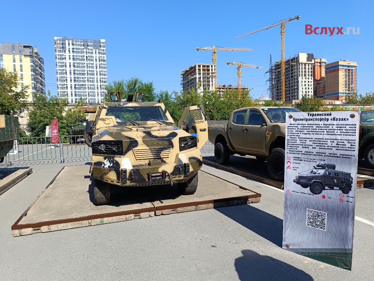 Гвоздём выставки, конечно же, является американский танк «Абрамс». Грозная техника была уничтожена небольшим дроном «Упырь», которые для фронта изготавливают волонтеры Екатеринбурга. Напомним, что вся трофейная техника и оружие были взяты в боях военнослужащими Центрального военного округа. Ими и скомплектована эта выставка.