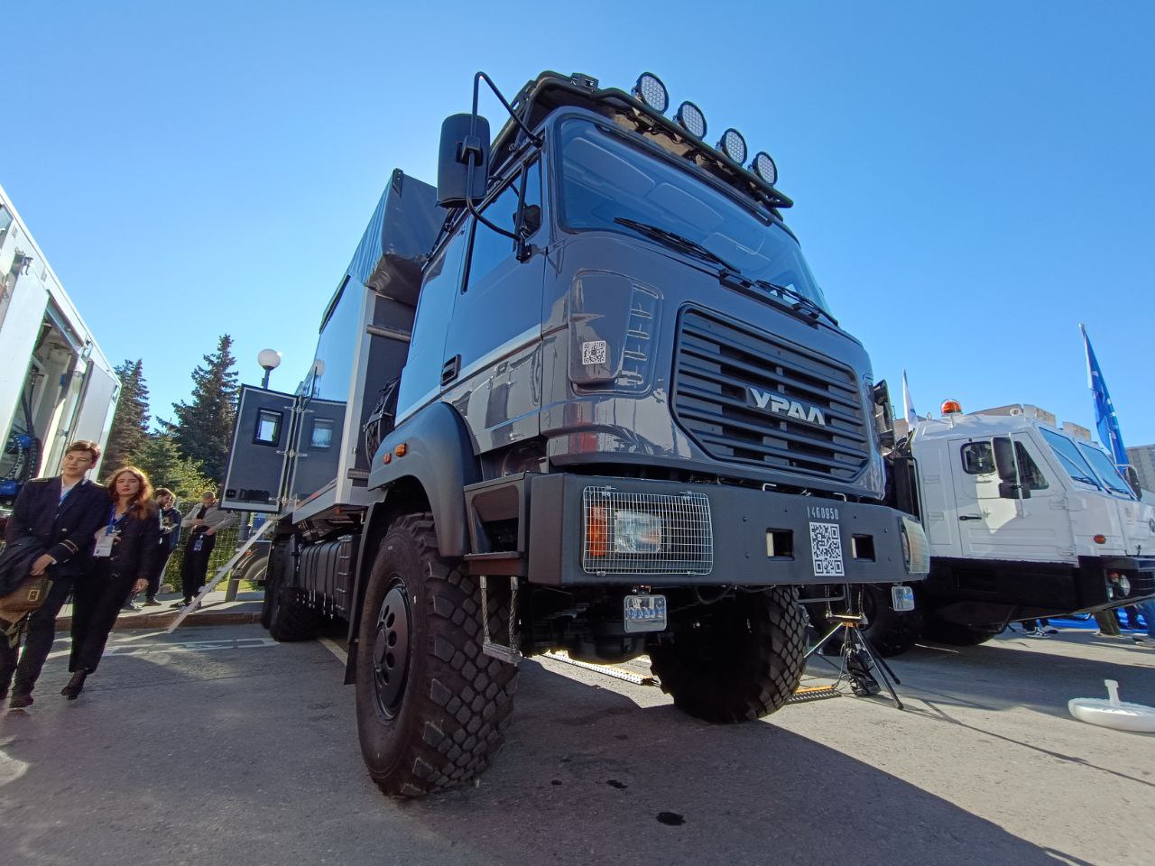 Знакомство губернатора с выставкой началось с уличных павильонов, где представлены современный антидроновый комплекс на базе «Урала», буровая установка с верхним приводом, созданная с использованием импортозамещающих технологий.