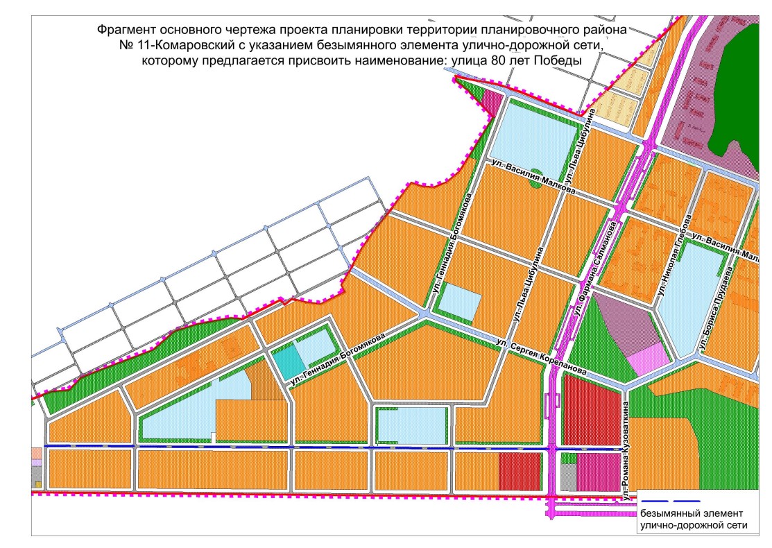 Улица 80-летия Победы может появиться в строящемся районе Тюменской слободы. По плану, она будет пересекать улицу Фармана Салманова, находиться рядом с улицами Сергея Корепанова и Геннадия Богомякова.