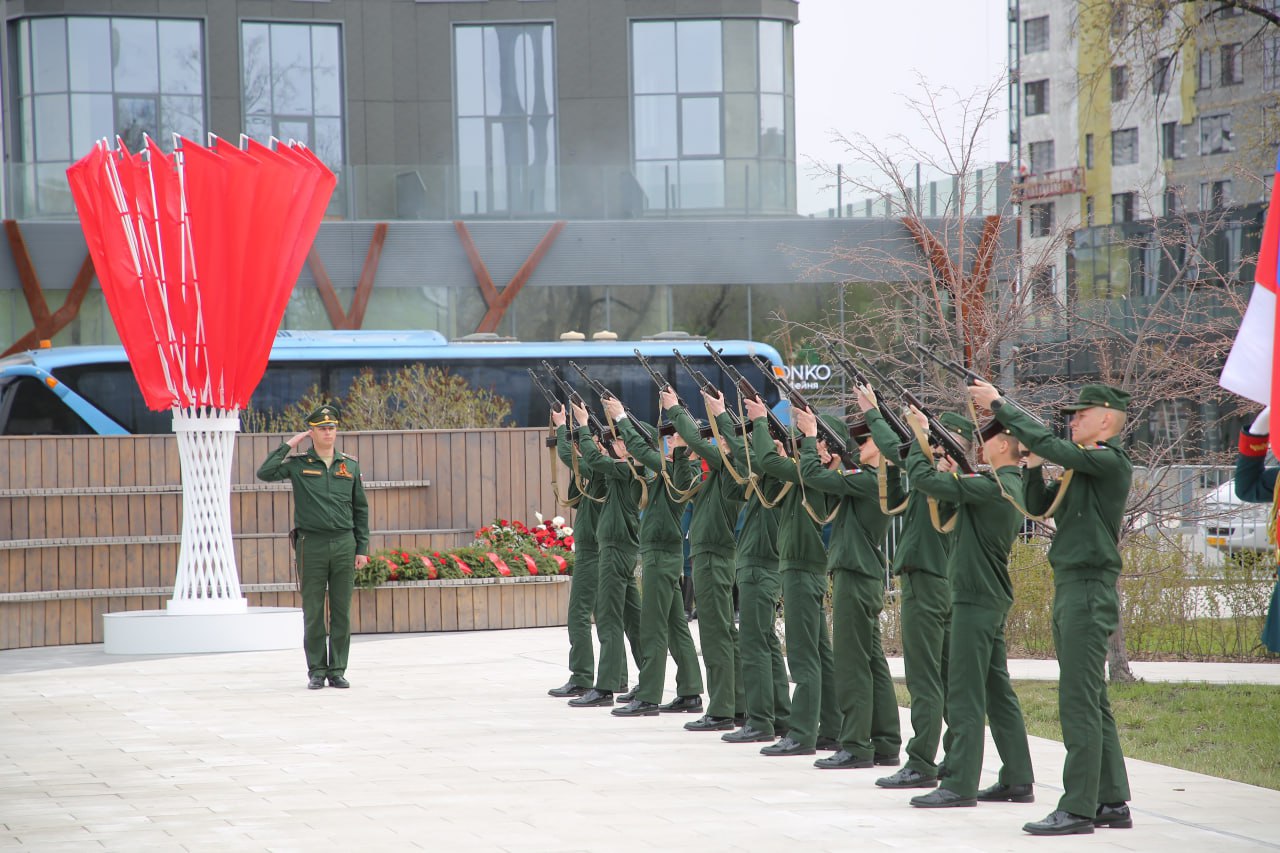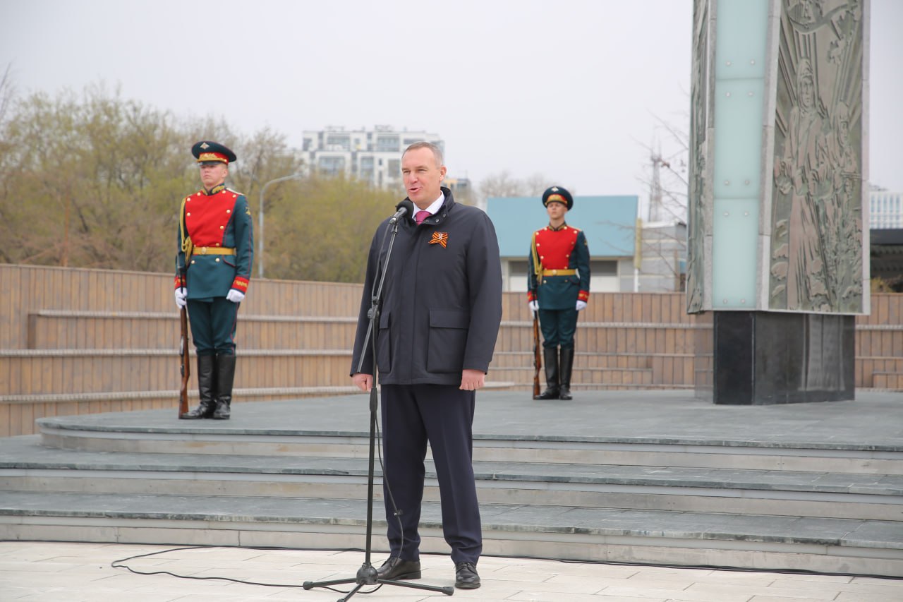 В Тюмени состоялся торжественный митинг в сквере Николая Машарова. Мероприятие посвятили празднику Весны и Труда и присвоению почётного звания города трудовой доблести.