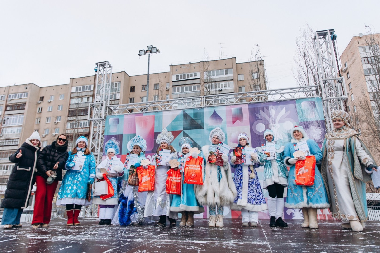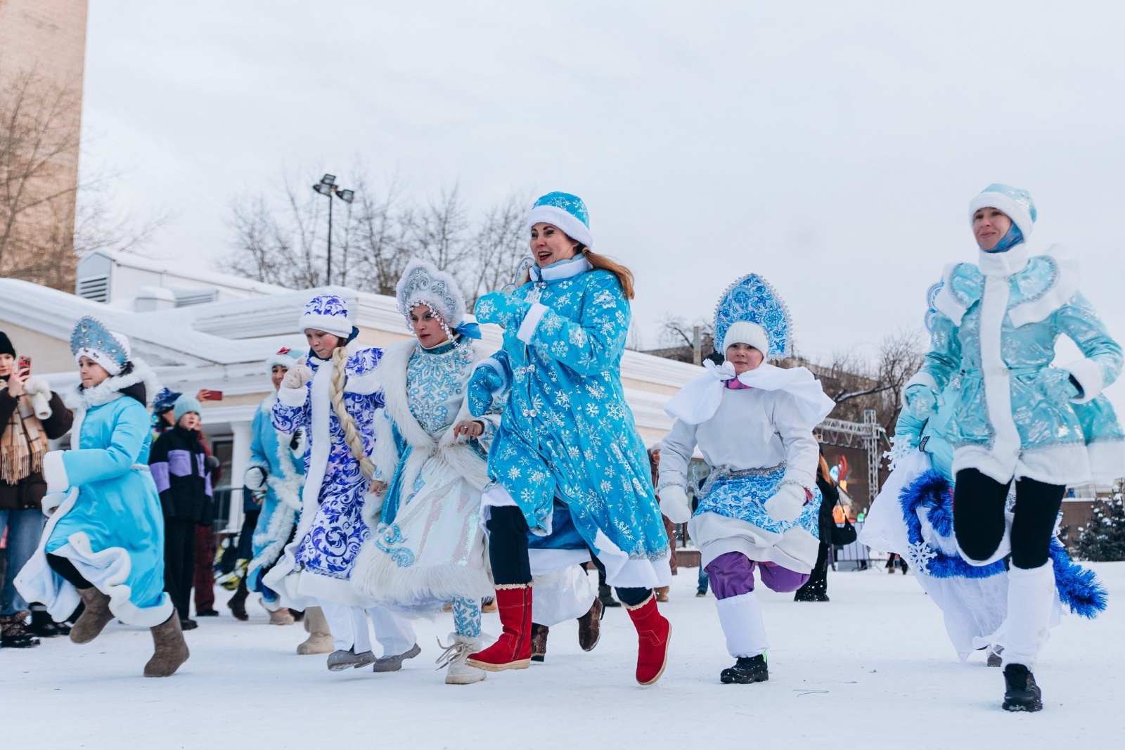 Конкурсная программа была насыщенной. Сначала участницы представили визитные карточки: Снегурочки пели, танцевали, читали стихи и знакомили зрителей со своим образом. Затем состоялся совершенно новый этап, который прошел впервые, — игровая программа с детьми. Каждая участница на время становилась ведущей, вовлекая ребят в игры, конкурсы и хороводы. И только после этого Снегурочки вышли на старт главного события — праздничного забега.
