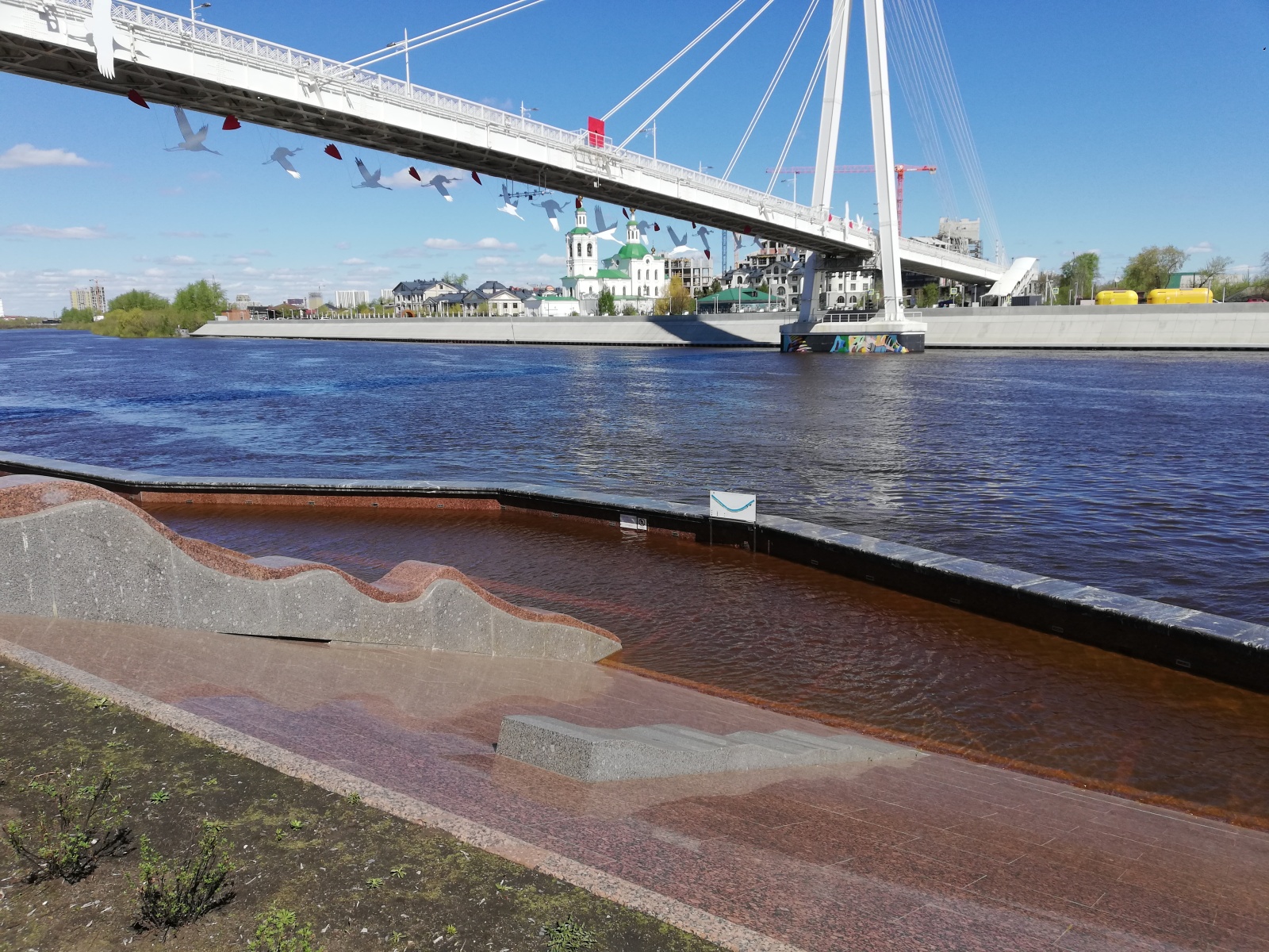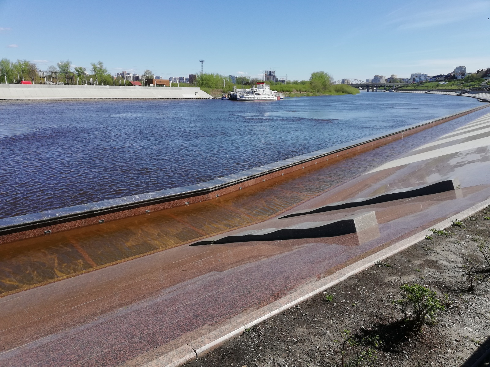 В Тюмени река Тура подтопила нижний ярус набережной. Проход для граждан закрыт.