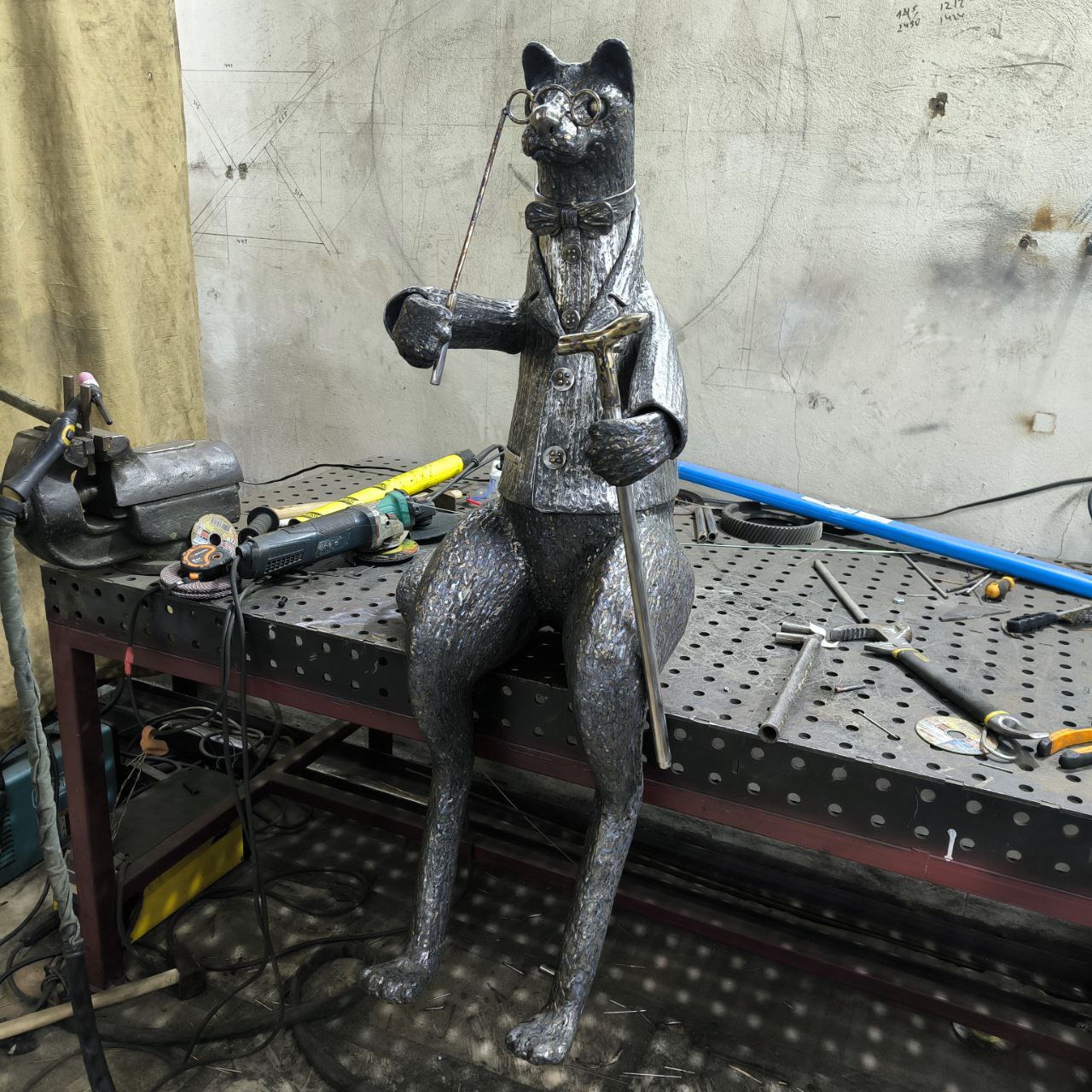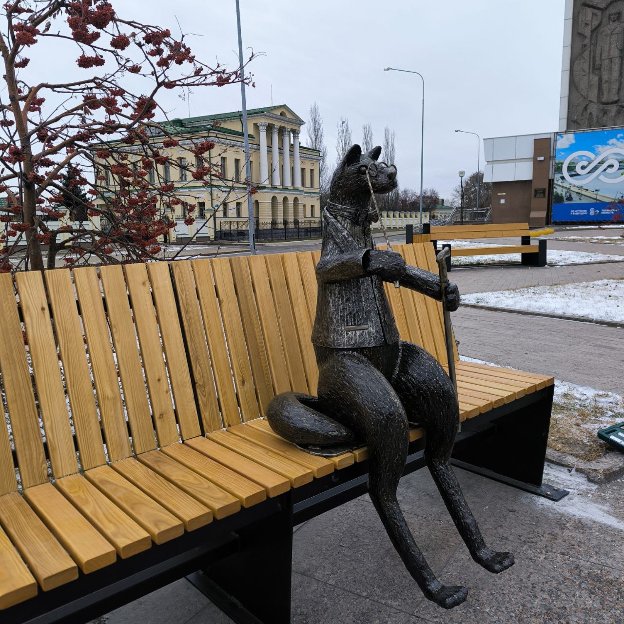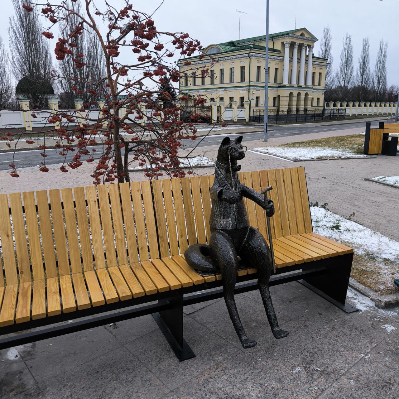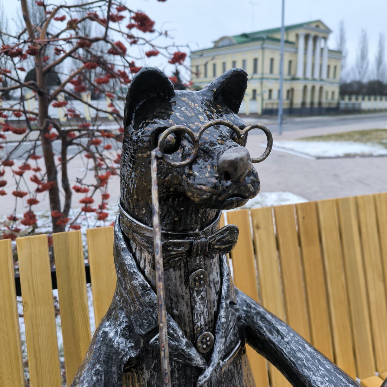 В Тюмени у ДК «Нефтяник» и резиденции губернатора появился необычный арт-объект в виде сидящего на лавочке соболя-интеллигента в пиджаке с бабочкой и лорнетом. С ним уже фотографируются горожане. Это ручная работа. Скульптура создана из сварных швов.