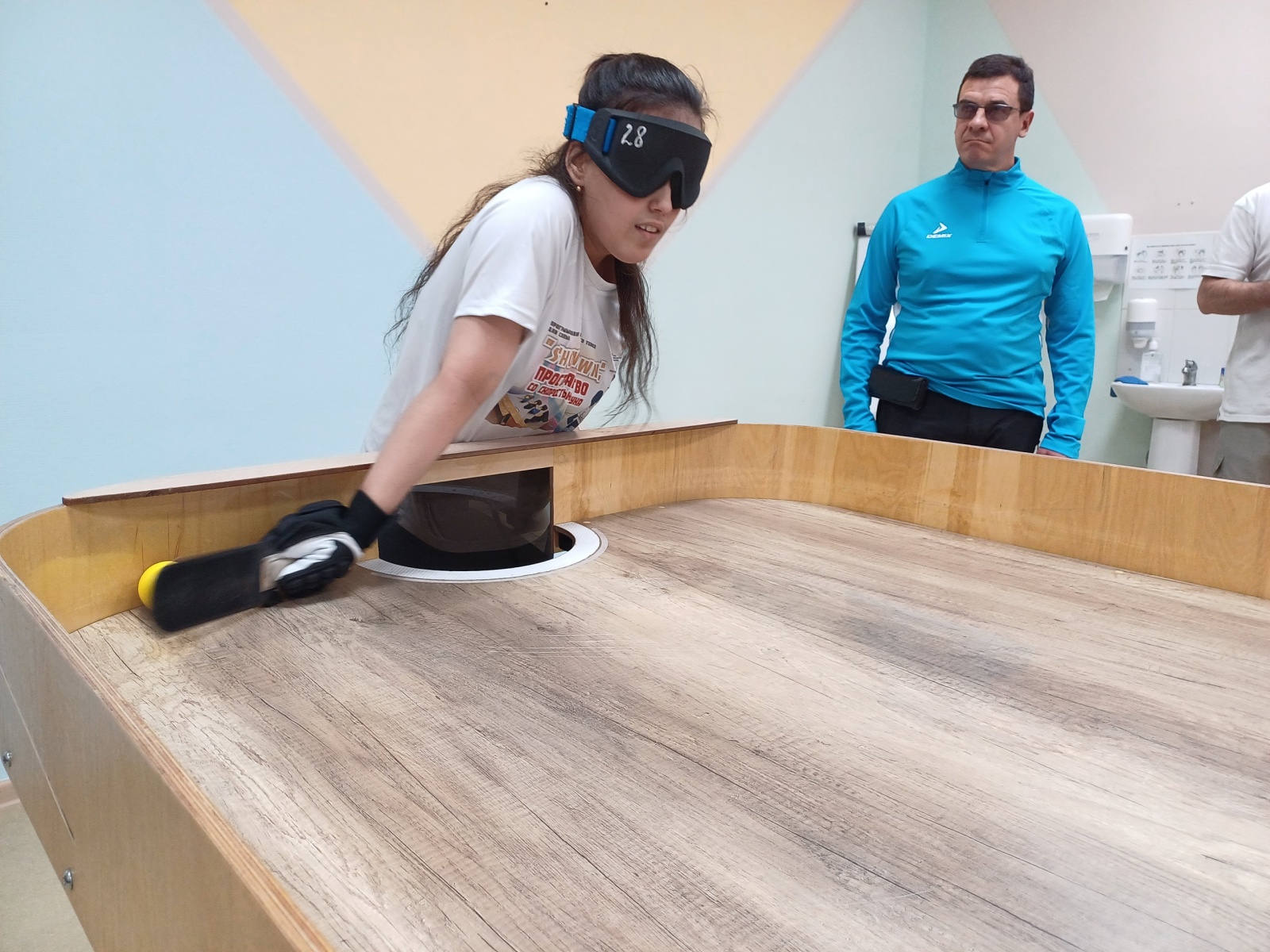 Игра для незрячих спортсменов сочетает в себе элементы настольного тенниса и аэрохоккея.