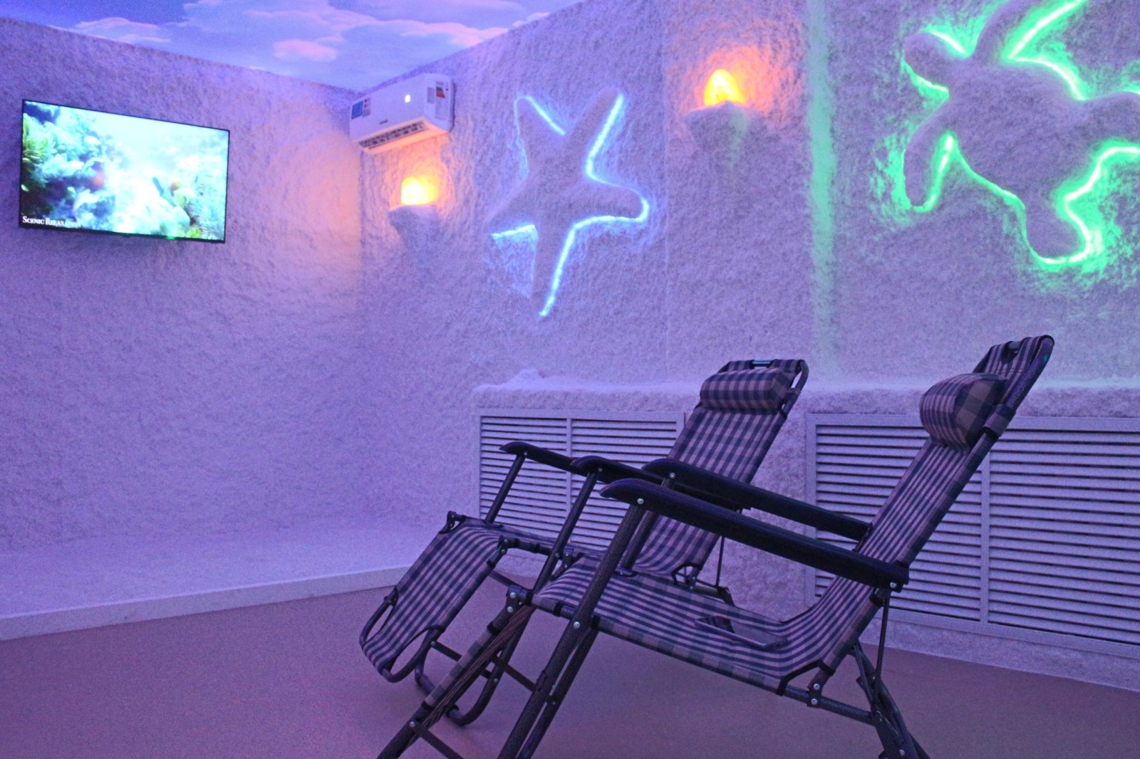 Галокамера представляет собой помещение, в котором стены и пол покрыты солью. Это природная терапия, при которой воссоздан микроклимат соляных пещер. Воздух в помещении ионизируется и насыщается веществом низкой концентрации высокодисперсного аэрозоля сухого раствора (соли).