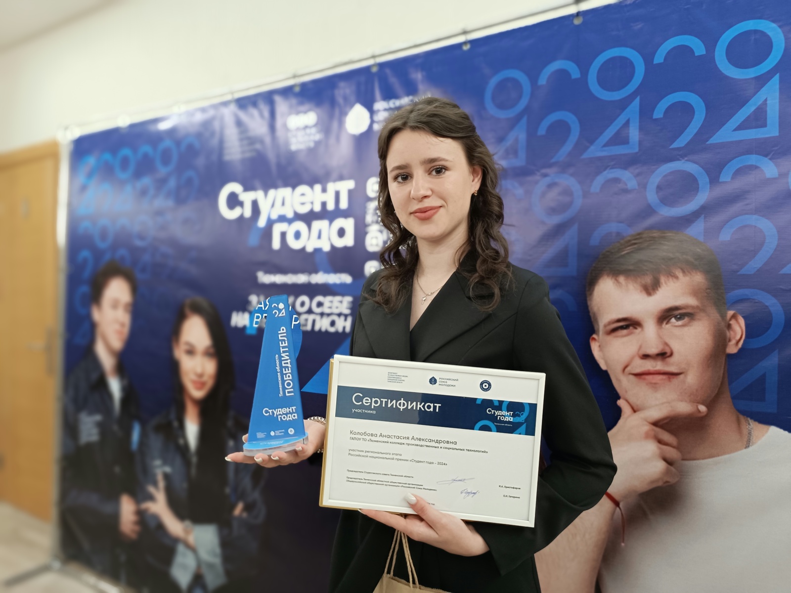«Спортсменкой года» стала студентка второго курса Тюменского колледжа образовательных и социальных технологий Анастасия Колобова.