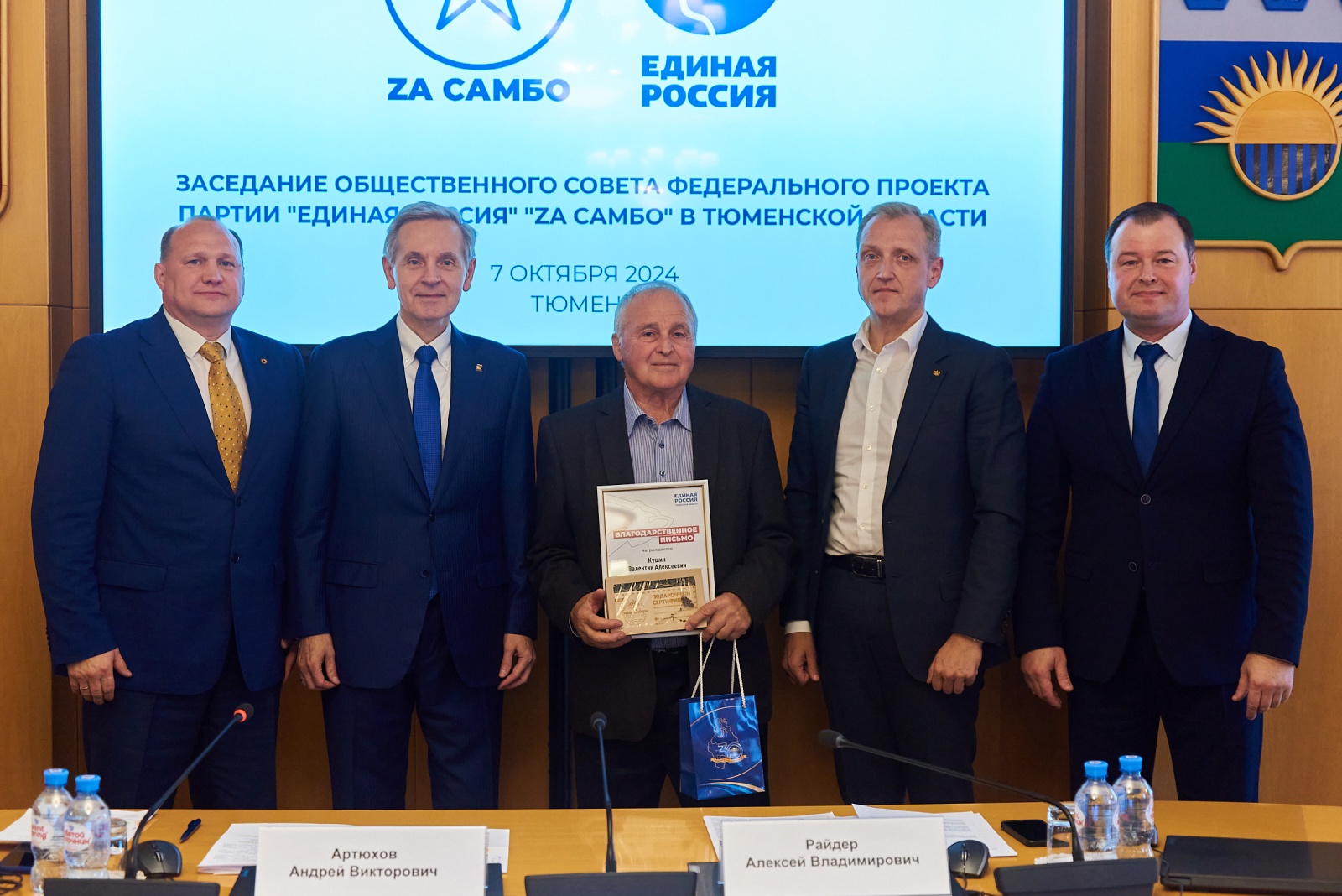 На заседании члены совета поздравили с 75-летием мастера спорта СССР по самбо, заслуженного тренера РФ Валентина Кушина. На протяжении долгих лет он занимался подготовкой юных спортсменов в Тюмени, десять лет возглавлял спортклуб «Атлет», был старшим преподавателем кафедры физвоспитания ТГНГУ (ныне ТИУ). Директору спортивной школы Нижнетавдинского района Евгению Базадырову Андрей Артюхов вручил благодарственное письмо Тюменской областной думы за вклад в развитие спорта.