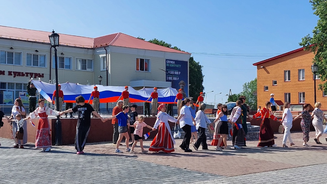В День России жителей Викуловского района объединил хоровод Дружбы. Праздничный концерт состоялся на площади районного дома культуры села Викулово. Участников праздника и зрителей пригласили на флешмоб, к которому присоединились представители Первых, Юнармии и волонтеры.