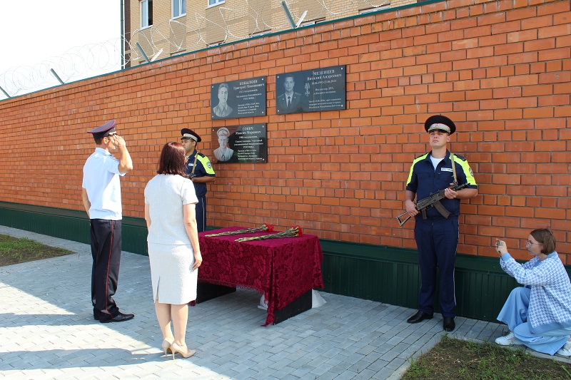 В городе Заводоуковске Тюменской области прошла церемония, посвященная открытию мемориальной доски памяти сотрудника органов внутренних дел Виталия Мезенцева, погибшего при исполнении служебного долга. В мероприятии приняли участие начальник МО МВД России «Заводоуковский» Владислав Федоров, представители органов власти, личный состав местной полиции, вдова и мать погибшего сотрудника, общественники.