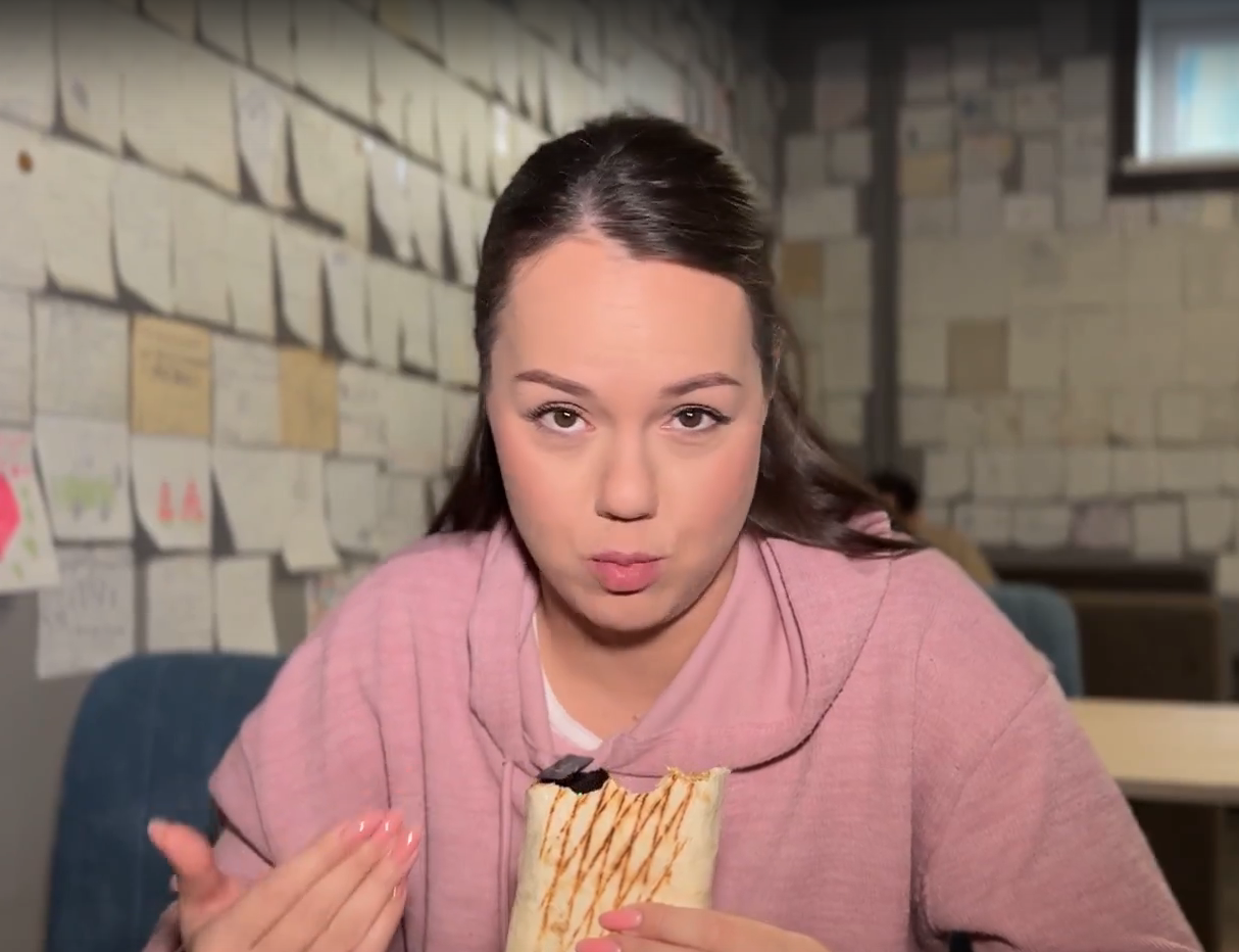 К слову, теплыми отзывами на липких стикерах обвешаны все стены. Чего там только нет! Люди со всего города признаются в любви к яркому блюду. Появился там отзыв и от ведущей: «Мага, шаурма „Утро“ была очень вкусной! Спасибо!»
