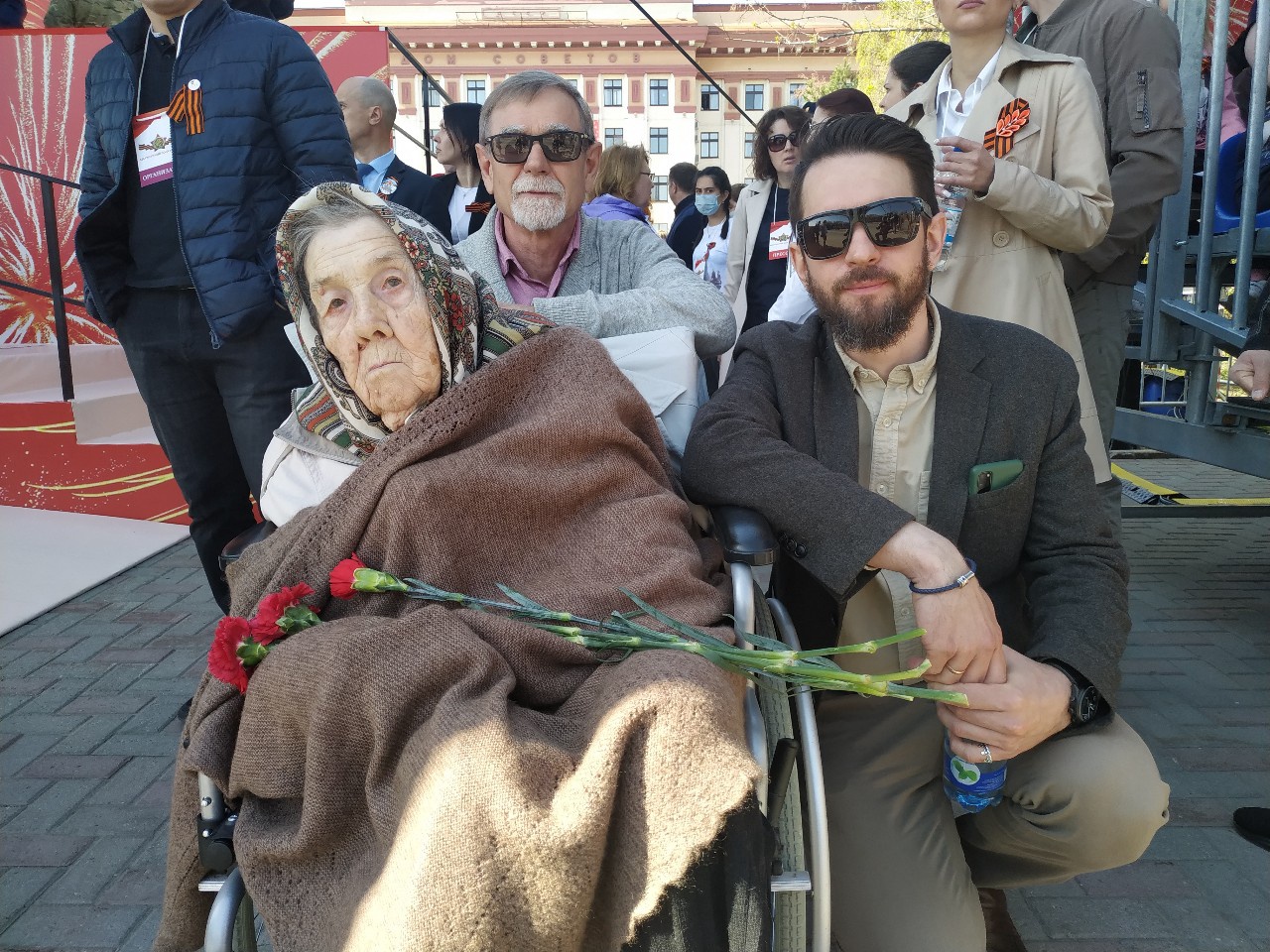 Пожилая женщина прибыла на парад Победы в Тюмени вместе с сыном и внуком