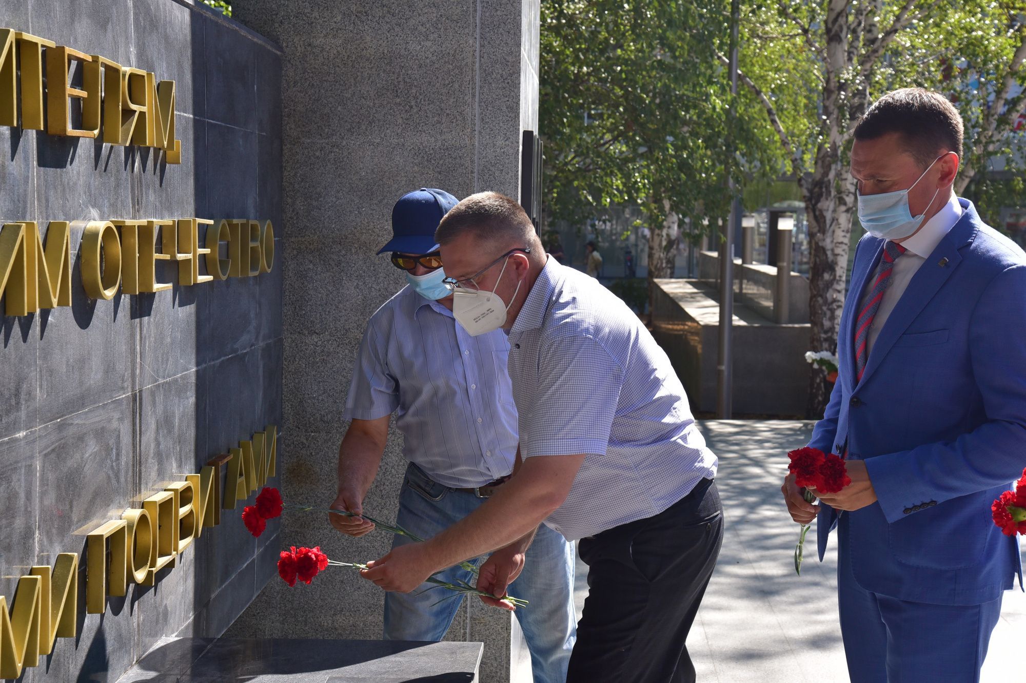В завершение церемонии все участники возложили цветы к монументу в память о работниках, трудившихся на заводе в военные годы. Их имена высечены на гранитных плитах, установленных в сквере.