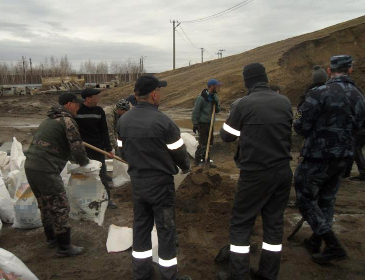 В связи с угрозой паводка в Ишимском районе Тюменской области сотрудники и осужденные исправительного центра № 1 города Ишима в качестве волонтеров помогают МЧС и другим службам в возведении противопаводковой дамбы на реке Ишим.