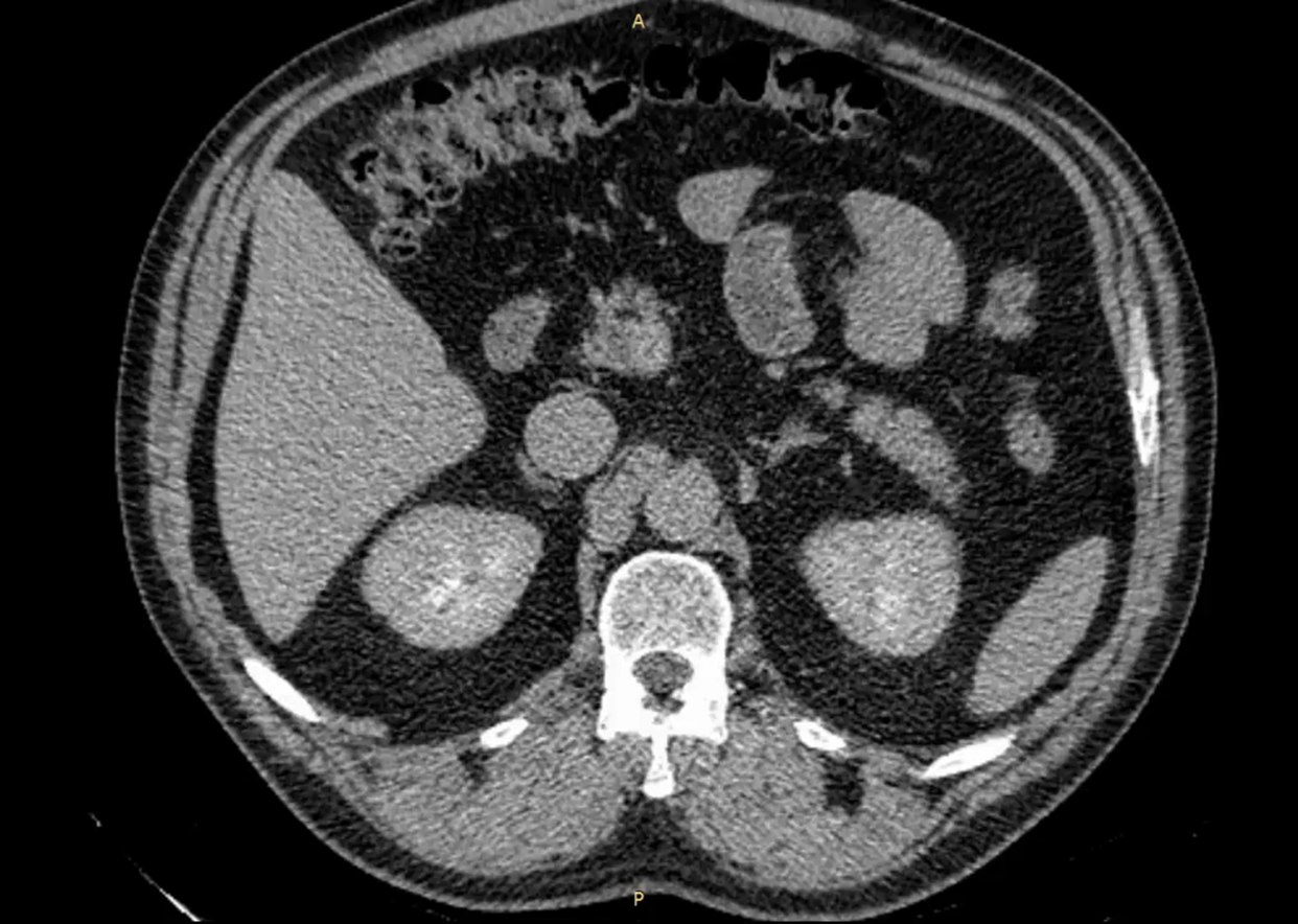 52-летний мужчина наблюдался в поликлинике с доброкачественным новообразованием в почке. Его беспокоили периодические боли в пояснице слева. Ранее выявленная киста почки росла, вызывая нарушение оттока мочи и угрозу снижения функции почки.