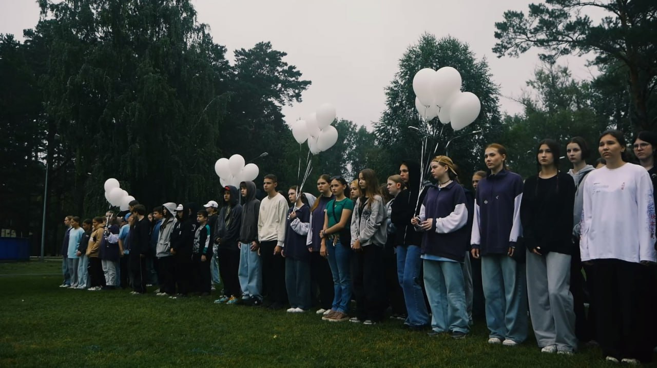 В тюменском детском центре «Алые паруса» состоялась линейка и минута молчания в знак памяти и скорби о погибших детях Донбасса. Педагоги и участники смены запустили в небо белые воздушные шары. Акция объединила 600 человек.