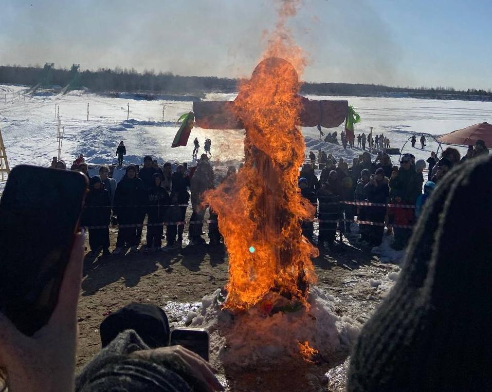 Сегодня днем здесь сожгли чучело зимы. Эта давняя традиция означает конец масленичной недели и символизирует приход весны.