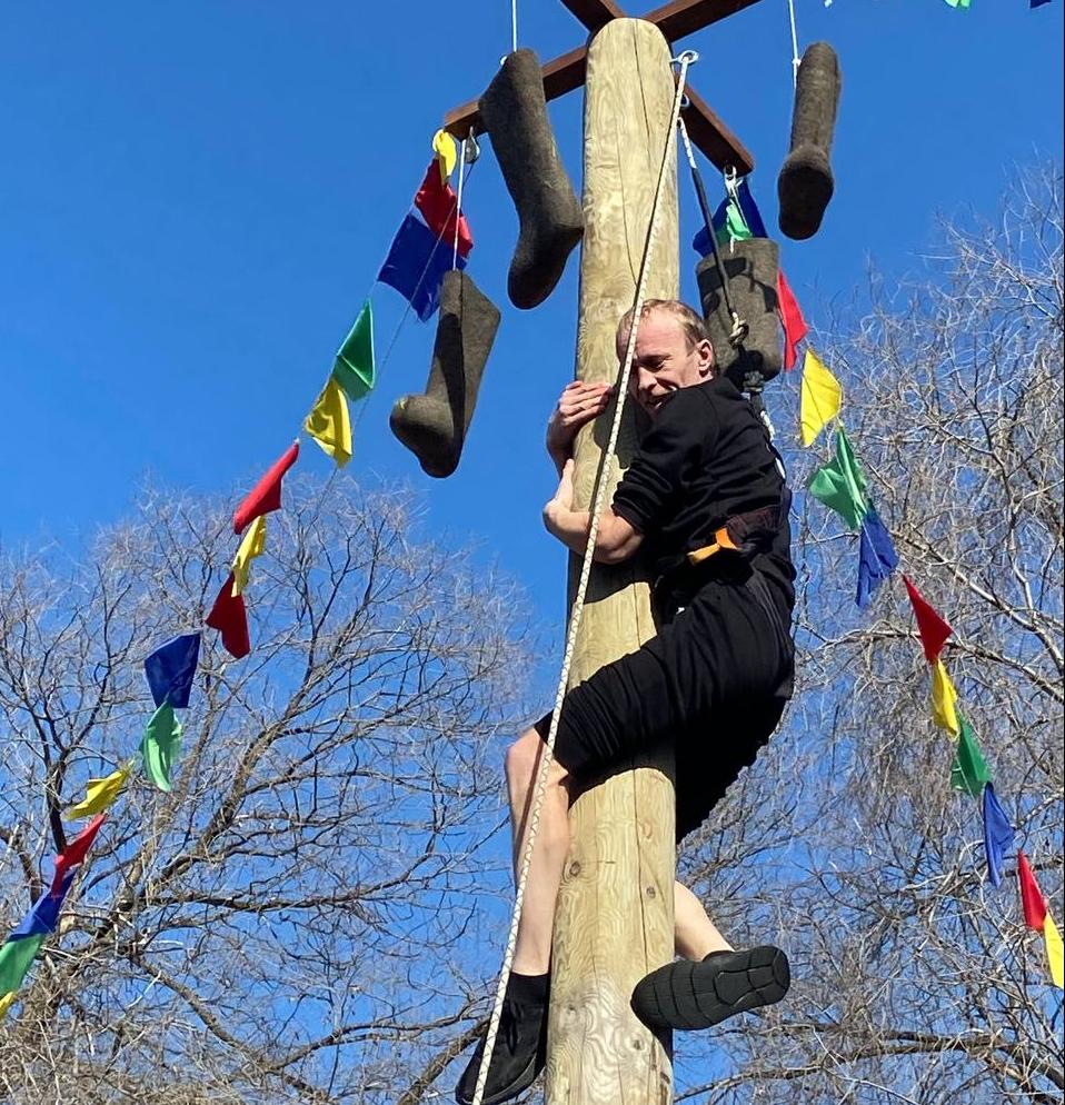Помимо проводов зимы, на Широкой масленице были и другие традиционные развлечения. Например, перетягивание каната, бой подушками и масленичный столб. Так, Алексей Гордеев испытал свою удачу, добрался до конца столба и получил в подарок умную колонку «Алиса».