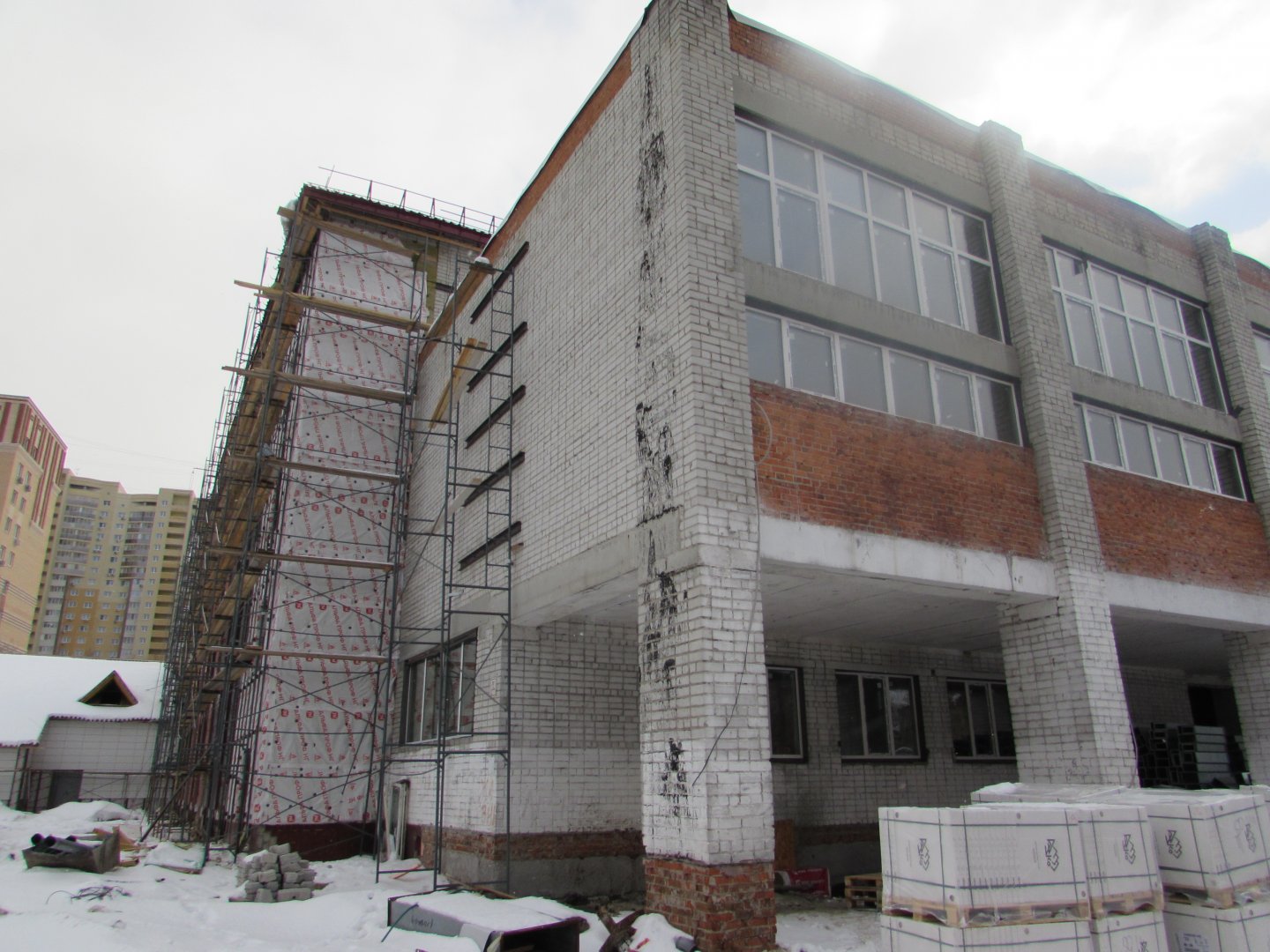Капремонт идет по плану. Строителям потребовалось усилить конструктив здания. Выполняются работы по восстановлению стен, кровли и фасада, а также замене сетей на территории, сообщает комитет по связям с общественностью и СМИ администрации Тюмени.