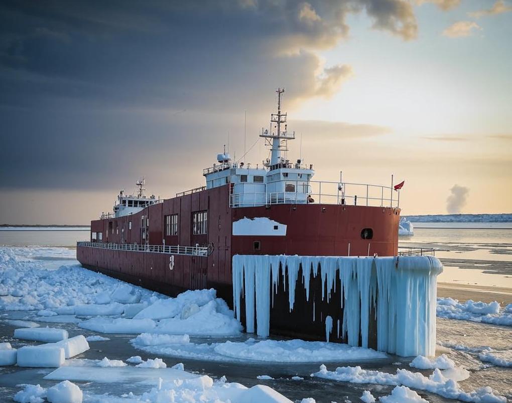 Предполагалось, что путь к барже проложит ледокол, но от этого плана пришлось отказаться.