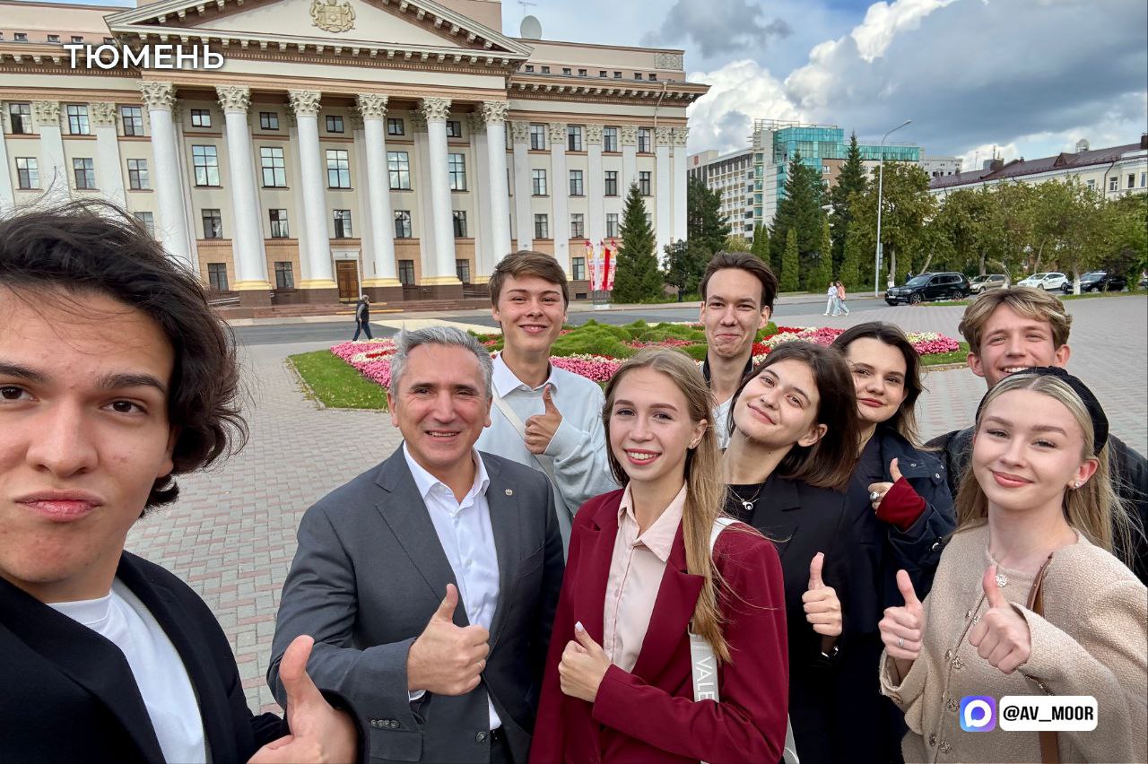 Губернатор Тюменской области Александр Моор 1 сентября сфотографировался с первокурсниками разных вузов и направлений. В кадре на фоне правительства — будущий хирург, психиатр, юрист, режиссер, специалист по информационной безопасности.