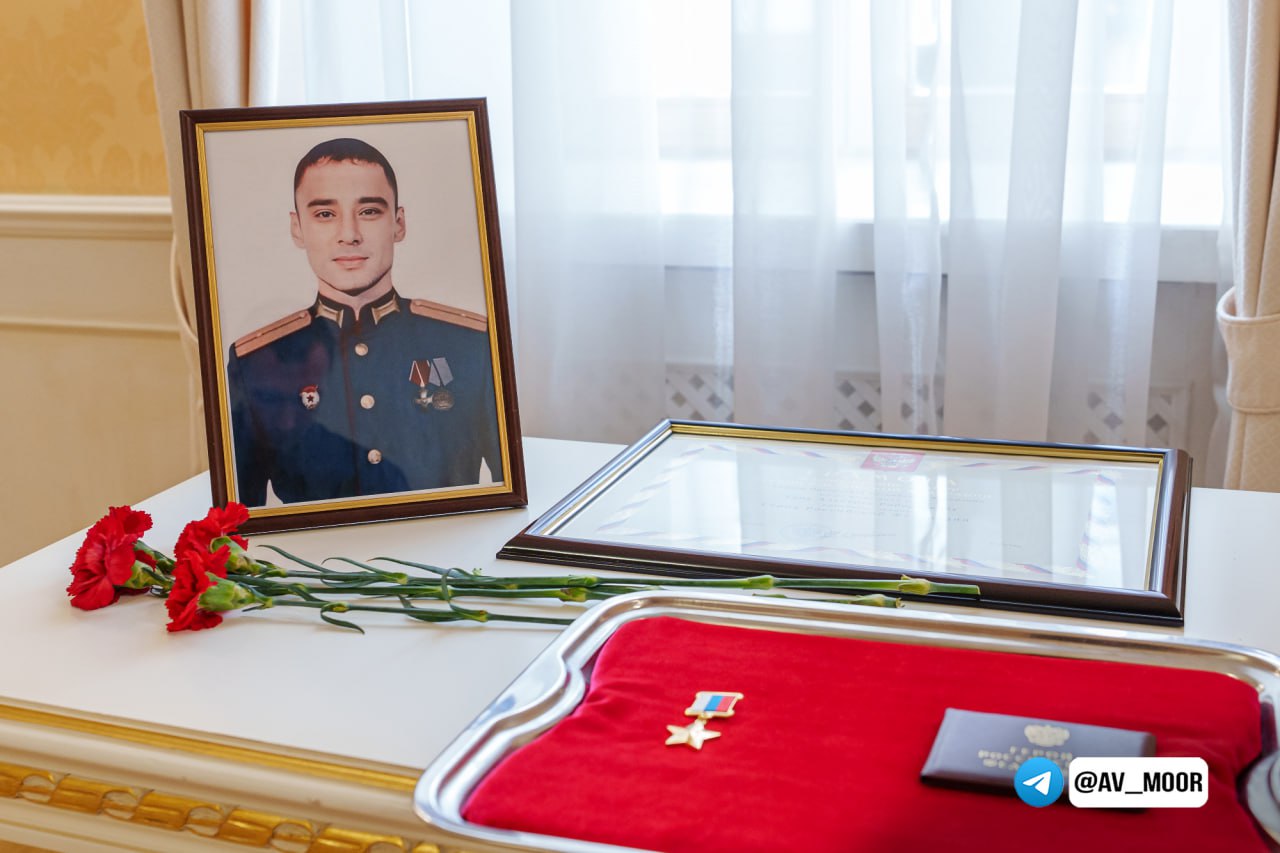 «Был дважды ранен. В критический момент, когда уже не мог двигаться, отдал бойцам приказ отступить и вызвал артиллерийский огонь на себя. Его решимость спасла жизни подчинённых», — говорит губернатор.