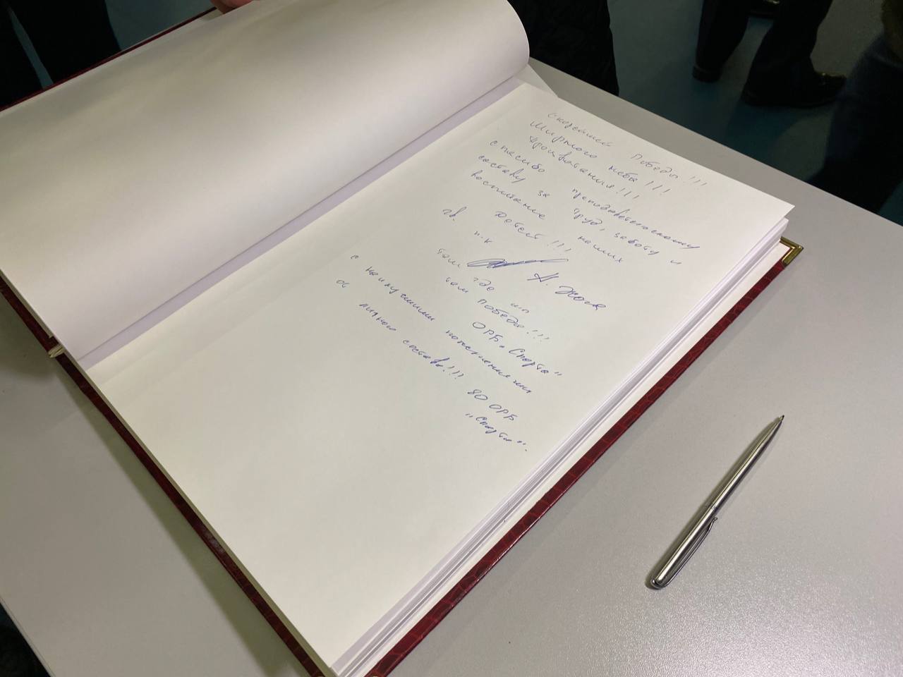 «Скорейшей Победы! Мирного неба! Процветания! Спасибо преподавательскому составу за труд, заботу и воспитание наших детей, — написал полпред в книге отзывов. — Там, где мы, — там Победа!».
