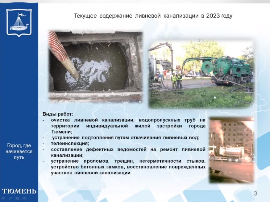 В Тюмени ливневая сеть продлена на 23,26 км, в том числе 19,84 км закрытого типа. Еще 2,1 км добавились в рамках капремонта улиц и самих коммуникаций. На 22 объектах ливневка появилась в рамках благоустройства (3,35 км). Обустроено 44 дренажных колодца. Кассовые расходы на содержание ливневой канализации в 2023 году превысили 181,3 млн рублей.
