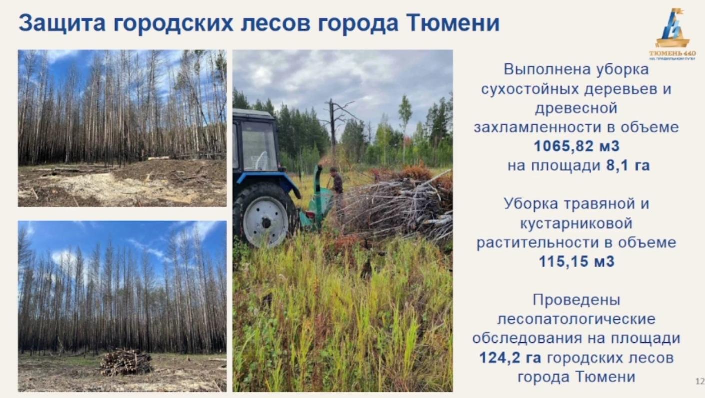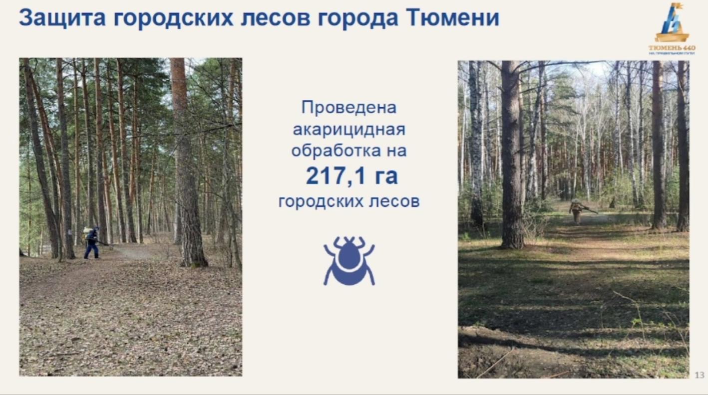 Заместитель главы города Александр Ильин сообщил, что площадь городских лесов Тюмени превышает 2 тыс. 155 га. В них обустроены 14 бесплатных зон отдыха площадью 103 тыс. 100 кв. метров. Для жителей обустроены беседки, мангальные зоны, качели, спортивные площадки, туалеты, контейнеры для мусора. В самих лесах предусмотрены условия для активного отдыха, есть нестационарные торговые объекты, фандоматы с кормом для белок. К 440-летию Тюмени планируют открыть «Комарово парк». В 2025 году в лесах выполнены противопожарные мероприятия.