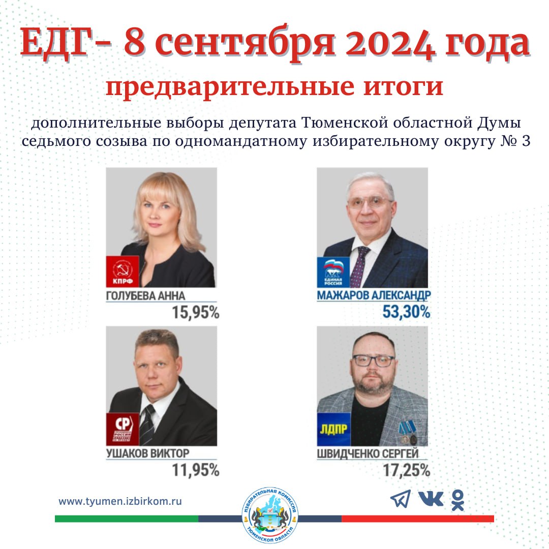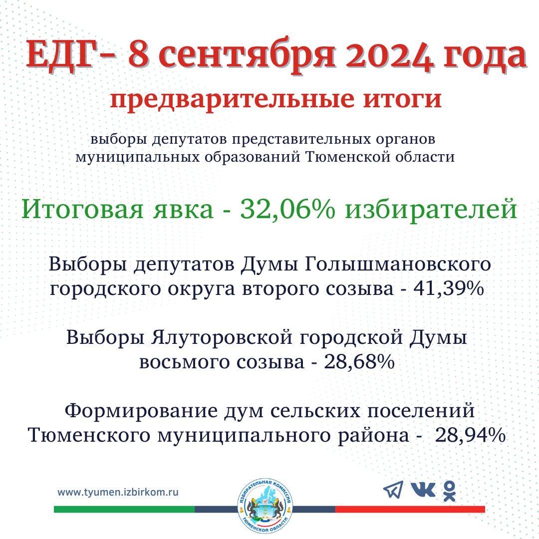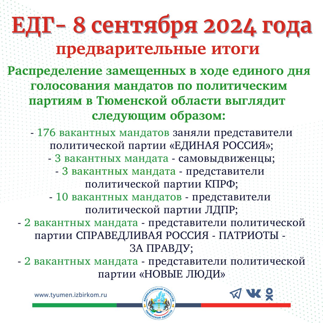 «Спасибо всем землякам, которые воспользовались своим правом выбора и пришли на избирательные участки в эти выходные. В нашем регионе проходили сразу 40 избирательных кампаний. По предварительным данным, большинство депутатских мандатов в думы самых разных уровней за представителями партии „Единая Россия“. Включая дополнительные выборы в Тюменскую областную думу», — прокомментировал глава региона в своем телеграм-канале.