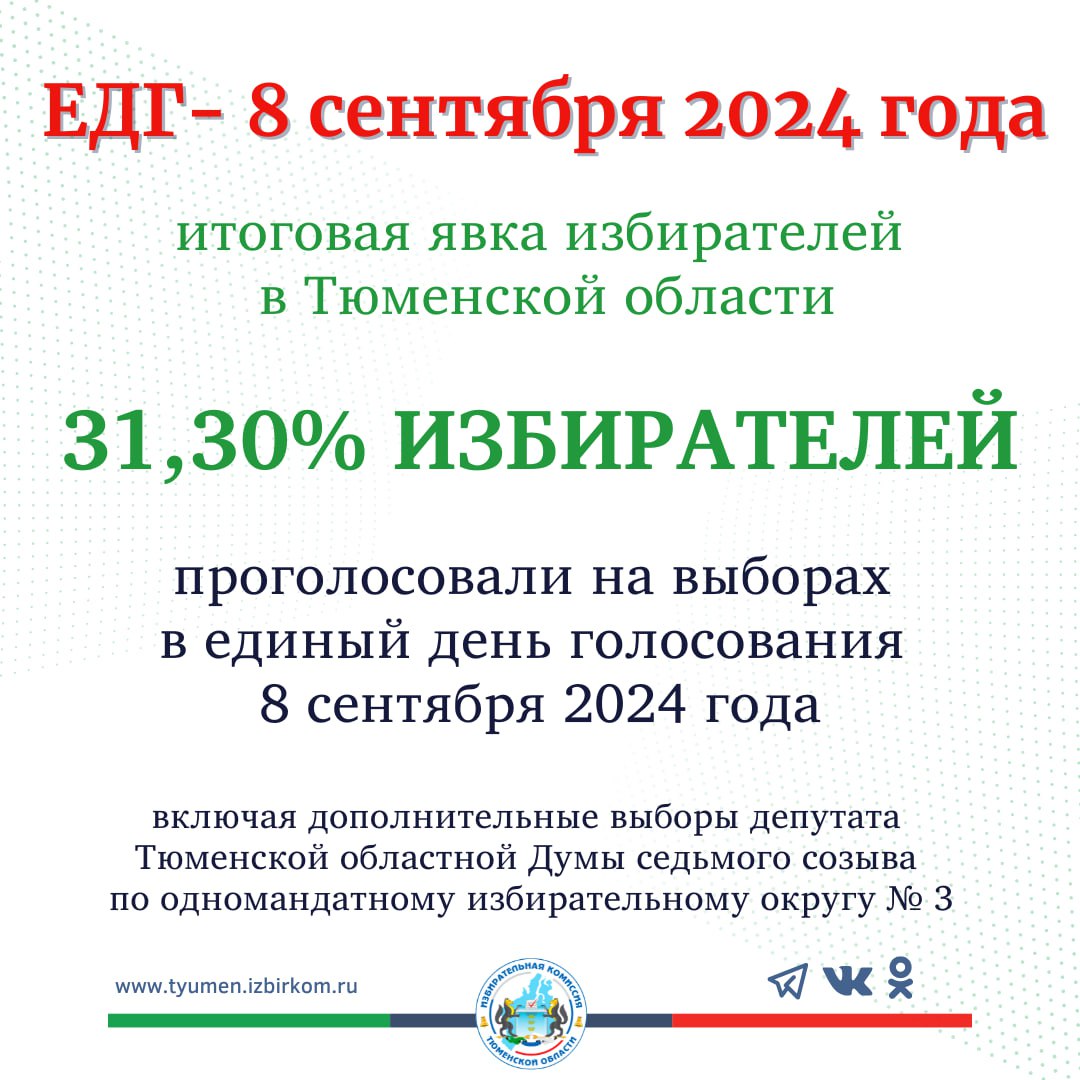 Глава регионального избиркома Игорь Халин сообщил, что итоговая явка, с учетом довыборов в облдуму, составила 31,3%.