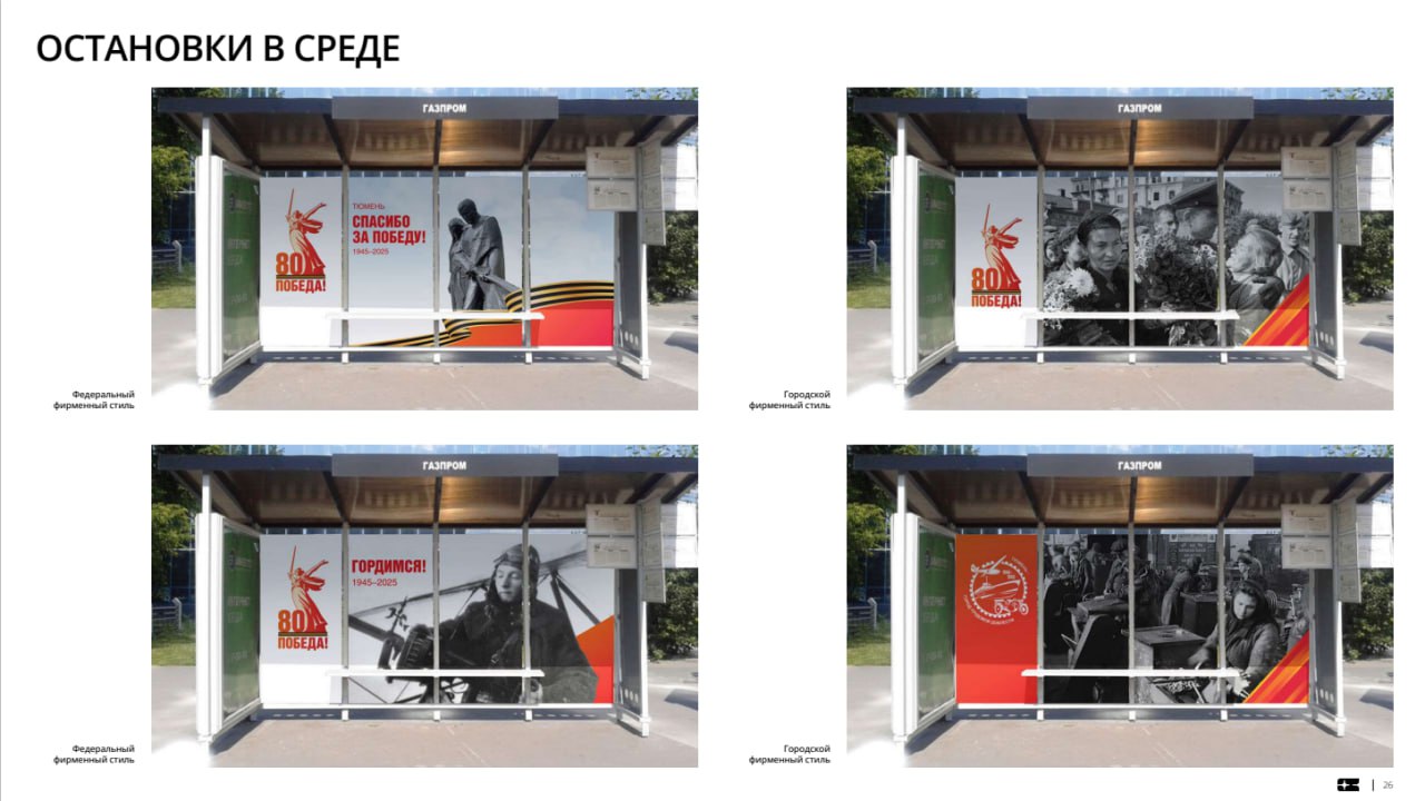 «Цветовая гамма и базовые шрифты были выбраны таким образом, чтобы подчеркнуть торжественность и значимость события, — прокомментировал в своем телеграм-канале глава города Максим Афанасьев. — Мы добавили местные элементы, акцентируя внимание на том, что Тюмень — город трудовой доблести и родина „Бессмертного полка“. В оформлении будут использованы портреты ветеранов, известные фотографии праздничных мероприятий и памятников военной истории».
