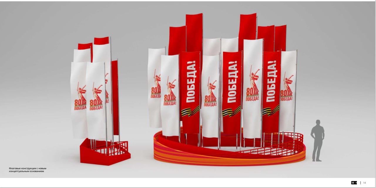 На гостевых маршрутах появятся баннерные панно на опорах освещения, а также флаговые конструкции. Это позволит создать атмосферу праздника и почтения к памяти героев войны.