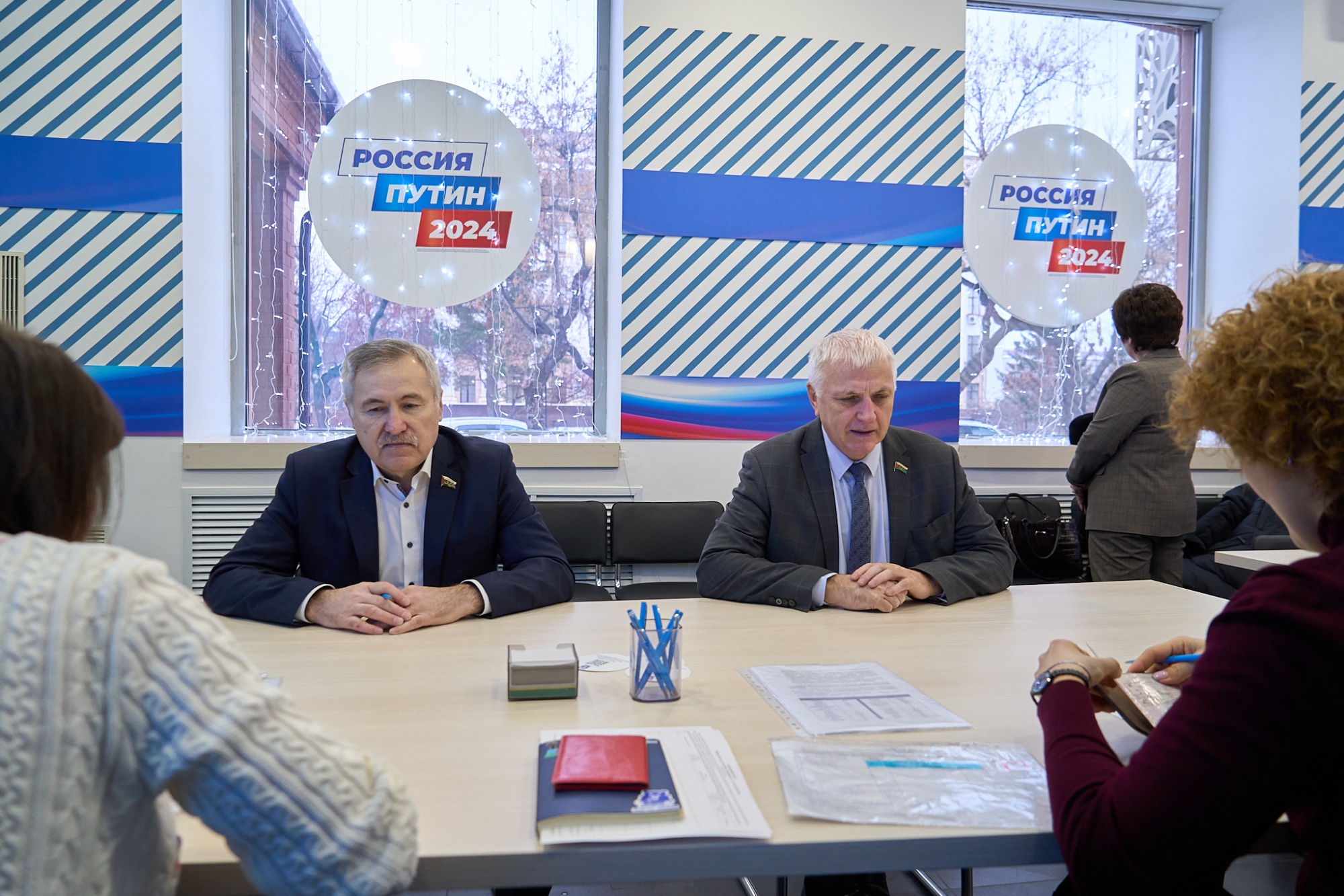 В региональном избирательном штабе кандидата в президенты России Владимира Путина активно идет сбор подписей. Поддержать действующего президента пришли и председатели Тюменской областной и городской думы.