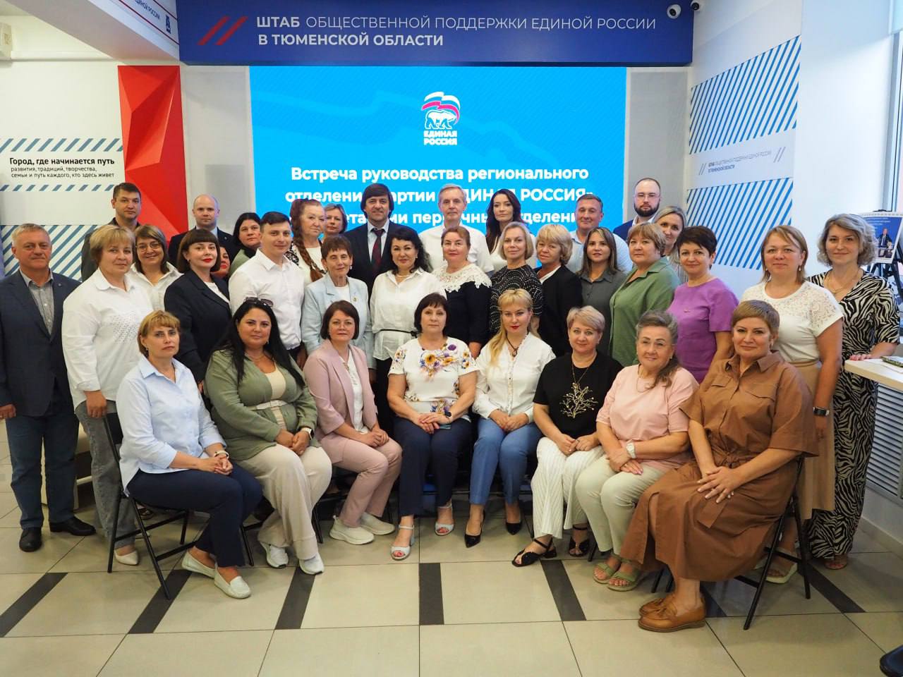 Встреча с секретарями тюменских первичных отделений «Единой России» прошла в Штабе общественной поддержки «Единой России». Ее провели секретарь Тюменского регионального отделения партии Андрей Артюхов, руководитель регионального исполкома Ольга Швецова и секретарь городского отделения партии Максим Афанасьев. Целью мероприятия стало обсуждение плана работы и перспектив развития первичных отделений.