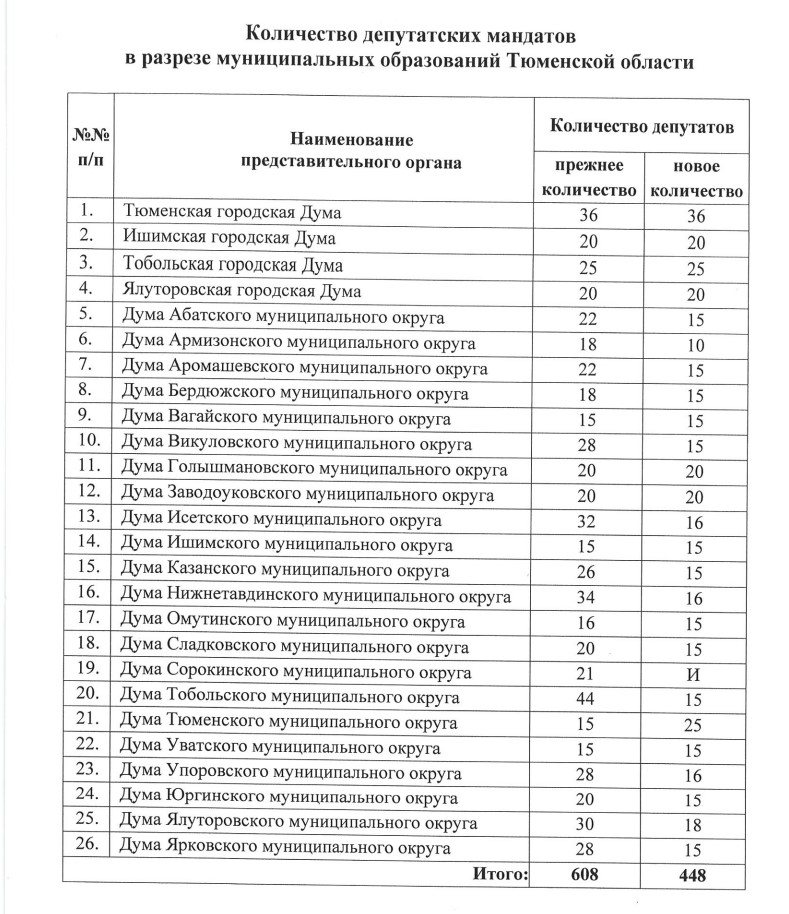 Как сообщили «Вслух.ру» в избирательной комиссии по Тюменской области, в целом число депутатов сократится с 608 до 468.