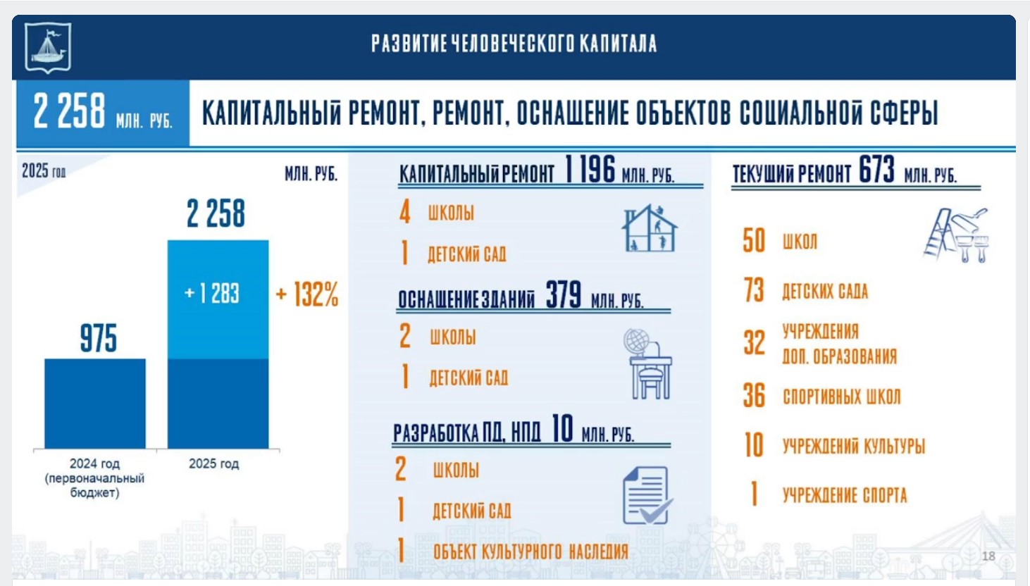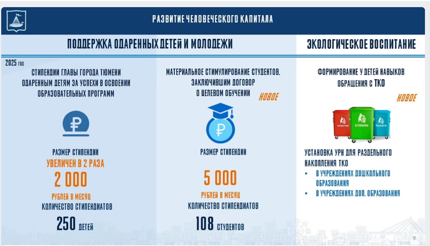 «Социальная сфера всегда приоритетна. Более половины всех расходов будут направлены на развитие человеческого капитала. 27,8 млрд руб. будут распределены между отраслями образования, культуры, спорта и молодёжной политики. Около 140 млн руб. будет направлено на поддержку детей участников СВО, среди новшеств — продленка для 1-6 классов, — говорит глава Тюмени Максим Афанасьев. — Бюджет развития позволит продолжать реализацию важных инвестиционных проектов. Продолжится строительство и капремонт дорог. Увеличение параметров бюджета говорит о доверии губернатора и думы. Теперь необходимо приложить усилия, чтобы эффективно его исполнить».