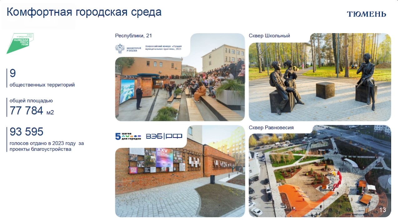 «В Тюмени особое внимание уделяется развитию инфраструктуры — транспортной, инженерной, коммунальной, социальной. То есть всем тем системным вопросам, от которых напрямую зависит качество повседневной жизни, экономический рост. Это то, что отличает Тюмень от многих других городов. Широко используются федеральные, региональные инструменты для поощрения инвестиционной, деловой, предпринимательской активности. Ответственная бюджетная политика, конструктивный диалог главы, администрации, думы, жителей позволяет городу и дальше развиваться, сохранять лидирующие позиции», — сообщил депутат Есенгалий Ибраев.