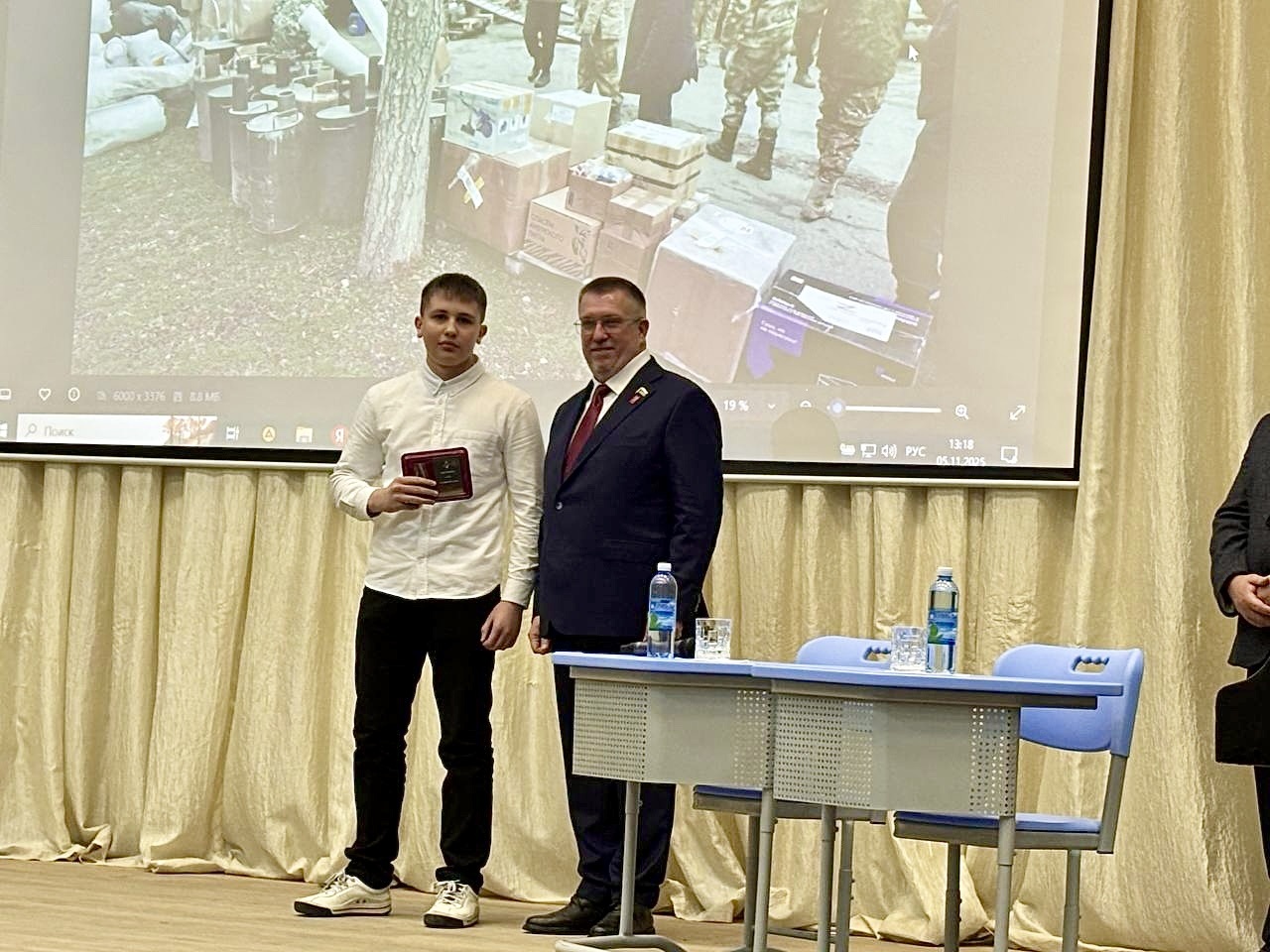 Депутат поблагодарил коллектив школы за активную гражданскую позицию: учащиеся и педагоги не только пишут письма и собирают посылки, но и освоили плетение маскировочных сетей. За вклад в общее дело Юрий Баранчук вручил благодарственные письма педагогам и ученикам.