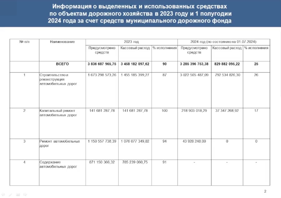 В бюджете Тюмени запланировано 3 млрд 285,4 млн рублей на дорожные работы в 2024 году. Основную часть суммы — более 3 млрд рублей — потратят на строительство и реконструкцию дорог; 218,9 млн — на капитальный ремонт; 43,9 млн — на ремонт. Об этом сообщил директор департамента дорожной инфраструктуры и транспорта Евгений Сорокин в городской думе. Вопрос обсуждался на заседании постоянной комиссии по экономическому развитию и бюджету.