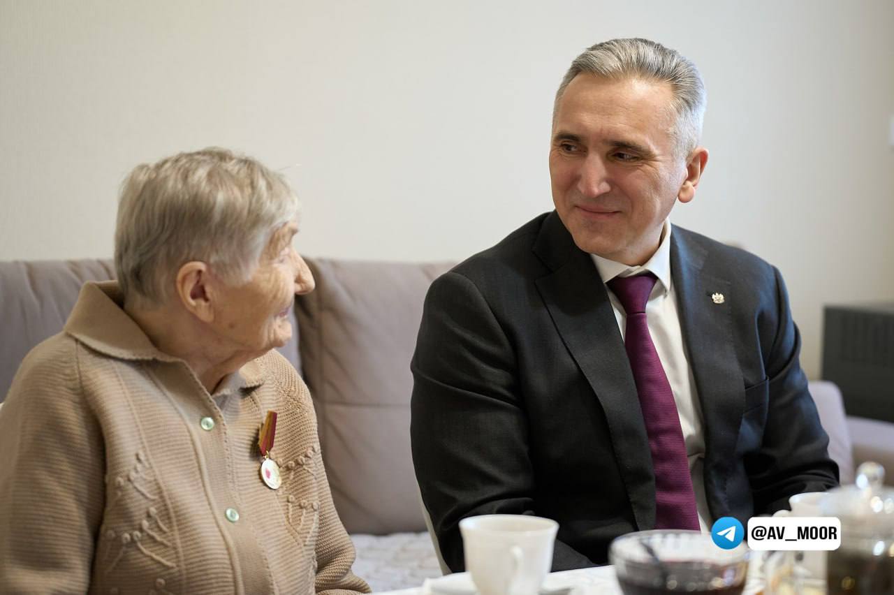 Во время рабочей поездки в Сорокинский район губернатор Тюменской области Александр Моор навестил ветерана Великой Отечественной войны Августу Мышкину. По поручению президента России глава региона вручил труженице тыла памятную медаль к юбилею Великой Победы.