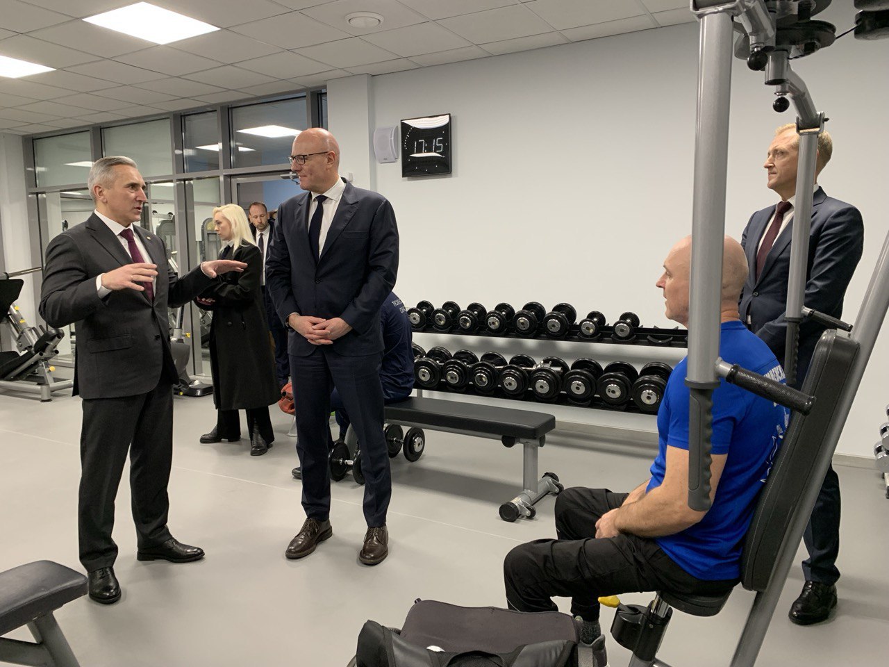 Спорткомплекс «Рубиновец» общей площадью свыше 4 000 квадратных метров построен за 1 год и 9 месяцев. Он предназначен для проведения круглогодичных тренировок и соревнований на льду, в том числе — для спортсменов-инвалидов. Ледовый комплекс является одним из элементов физкультурно-спортивного кластера, который включает в себя баскетбольную площадку с трибунами, уличные адаптивные спортивные тренажеры.Дмитрий Чернышенко и Александр Моор осмотрели тренажерный зал и расположенный в здании спорткомплекса центр развития фиджитал-дисциплин.
