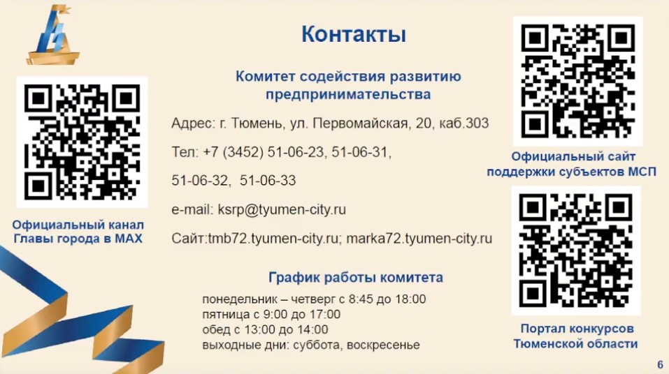 Необходимо обратиться в комитет содействия развитию предпринимательства в администрации Тюмени: ул. Первомайская, 20. Телефоны: (3452) 51-06-23, 51-06-31, 51-06-32, 51-06-33.