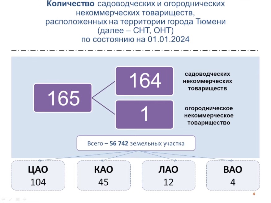 В Тюмени располагается 165 садовых и огороднических некоммерческих товариществ, которые включают более 56,7 тысячи земельных участков. Более 18 тысяч человек проживают в СНТ постоянно. Создаваемые условия для проживания на дачах, а также меры безопасности оценили депутаты городской думы.