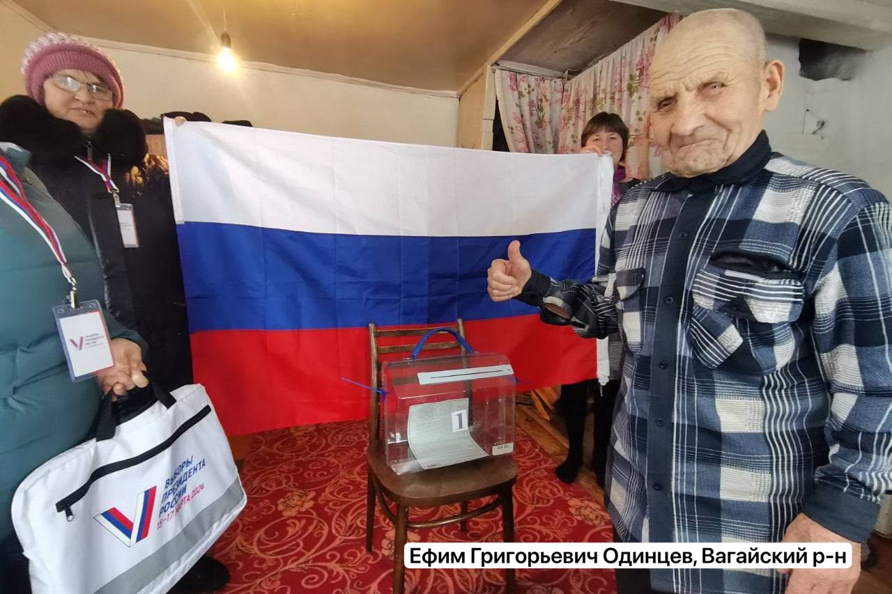 По-прежнему в строю фронтовик из Вагайского района Ефим Григорьевич Одинцев. Бывший военный радист в свои 98 лет уверен, что голос каждого важен. К нему члены участковой избирательной комиссии приехали еще в пятницу — в первый день голосования.