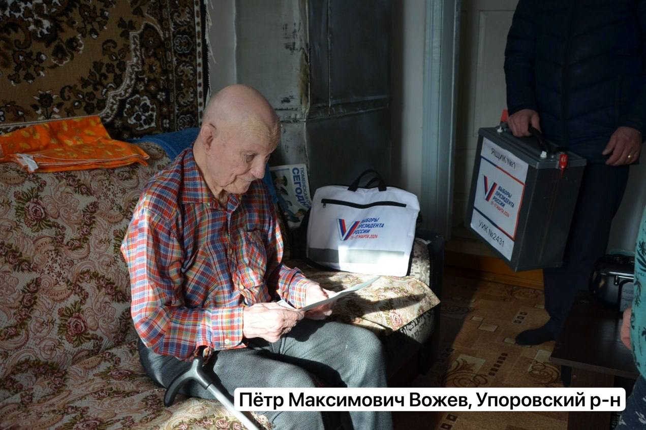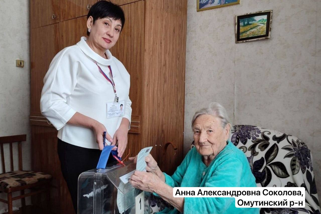 «Искренне восхищаюсь ответственностью и силой духа земляков, — прокомментировал в телеграм-канале губернатор Александр Моор. — На дому проголосовала единственная из ныне живущих в Омутинском районе участница Великой Отечественной войны Анна Александровна Соколова. Бывшая военная связистка не пропускает ни одни выборы. И возраст — 101 год — не помеха. Также гражданский долг на дому выполнил ветеран Великой Отечественной войны Пётр Максимович Вожев из Упоровского района. И ему 101 год».
