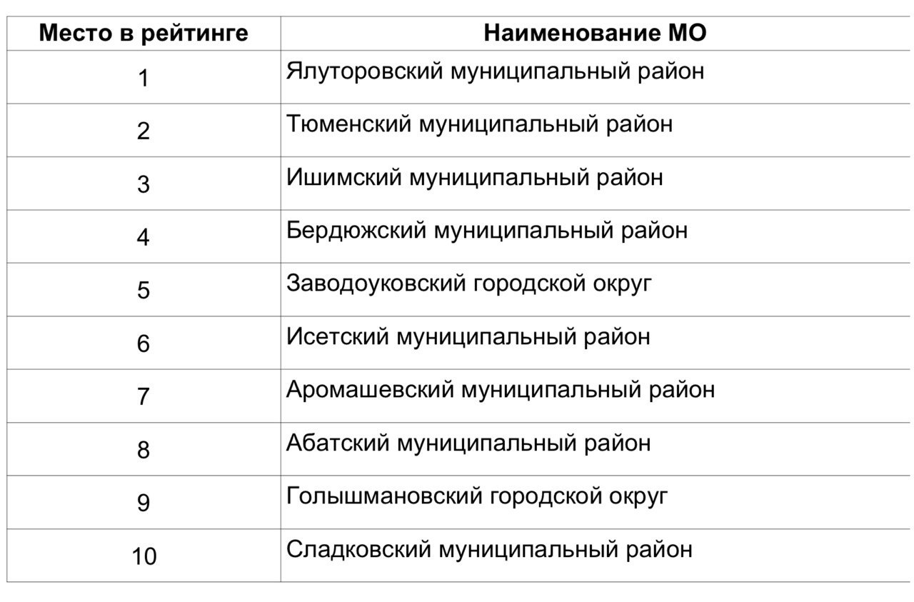 На 2 и 3 местах — Тюменский и Ишимский районы.