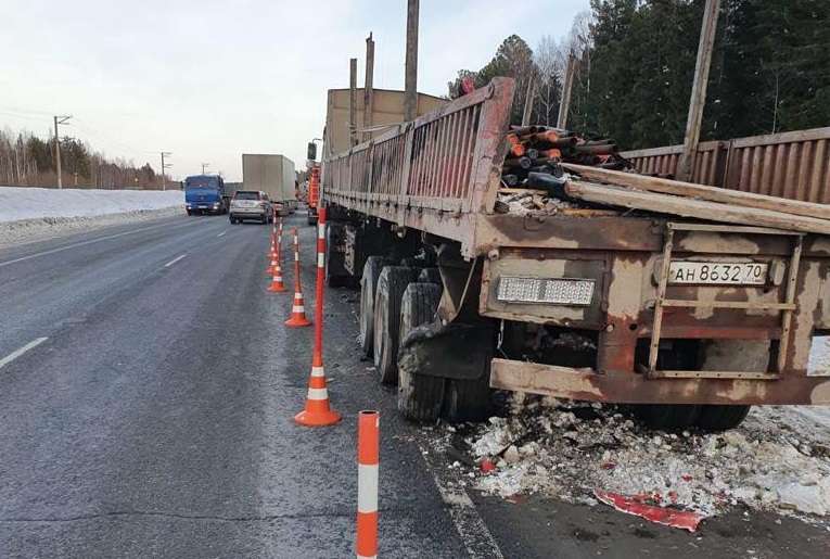 Водитель китайского грузовика занимался ремонтом машины, находился под прицепом.